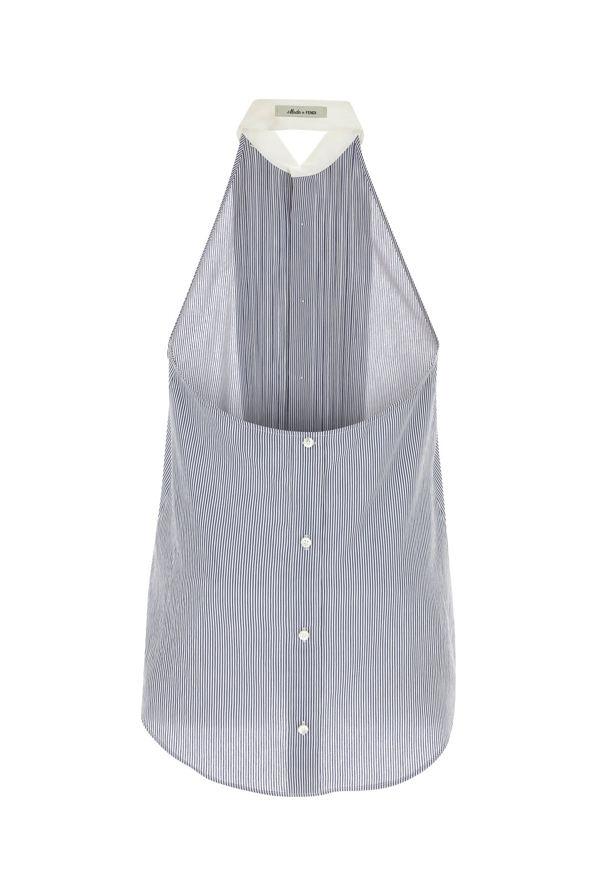 Camicia smanicata realizzata in misto viscosa caratterizzata da ricamo a righe su tutta la superficie.