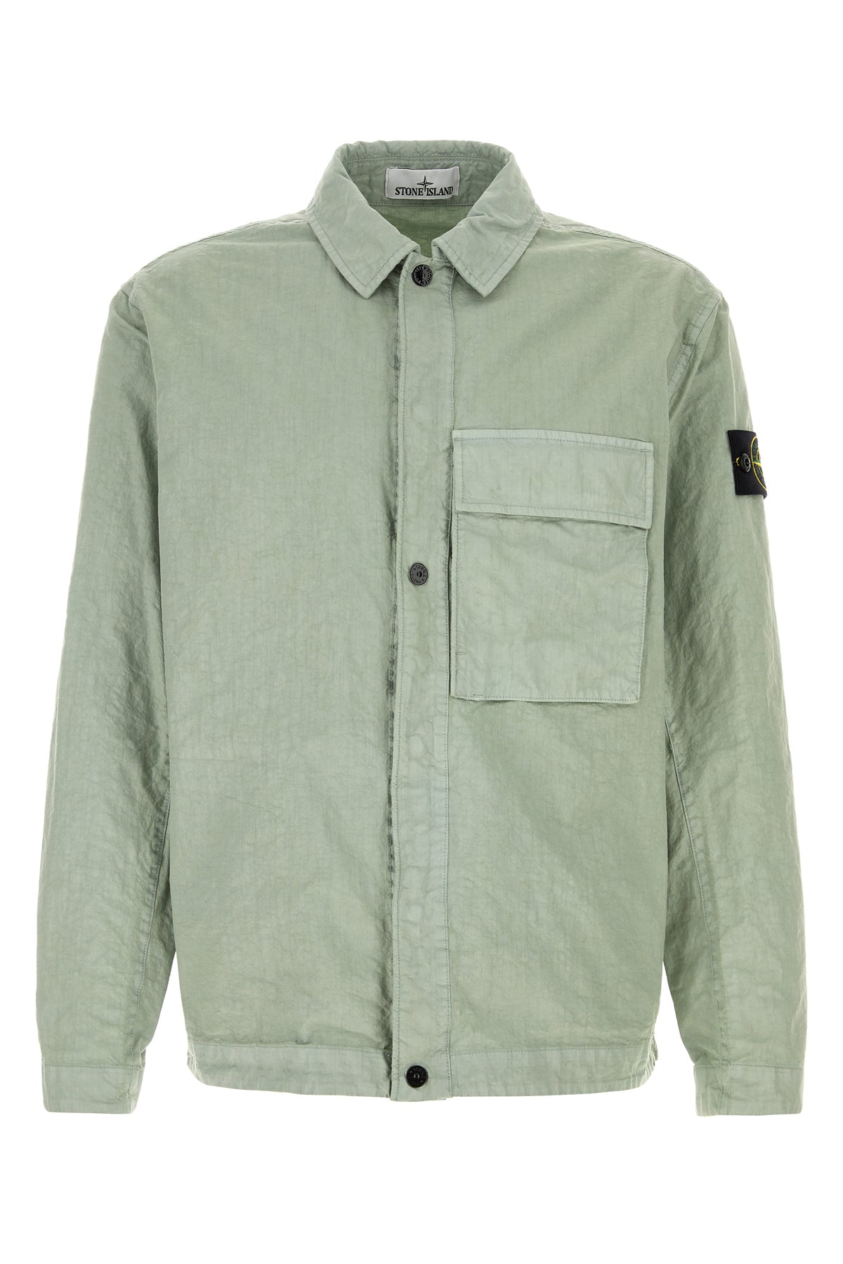 Camicia realizzata in nylon ad effetto stropicciato arricchita da etichetta logata amovibile sulla manica.