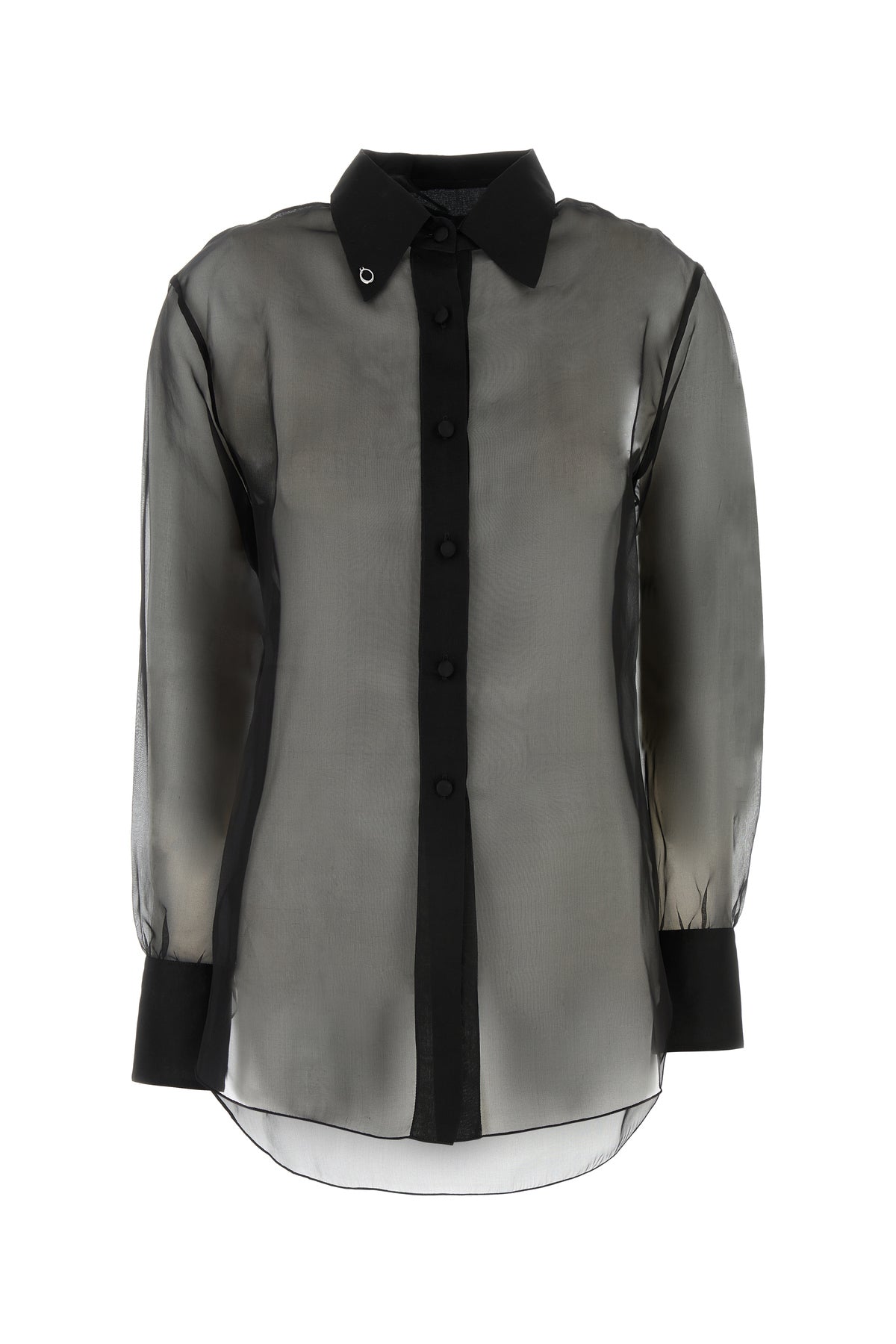 Camicia semitrasparente realizzata in organza di pura seta.