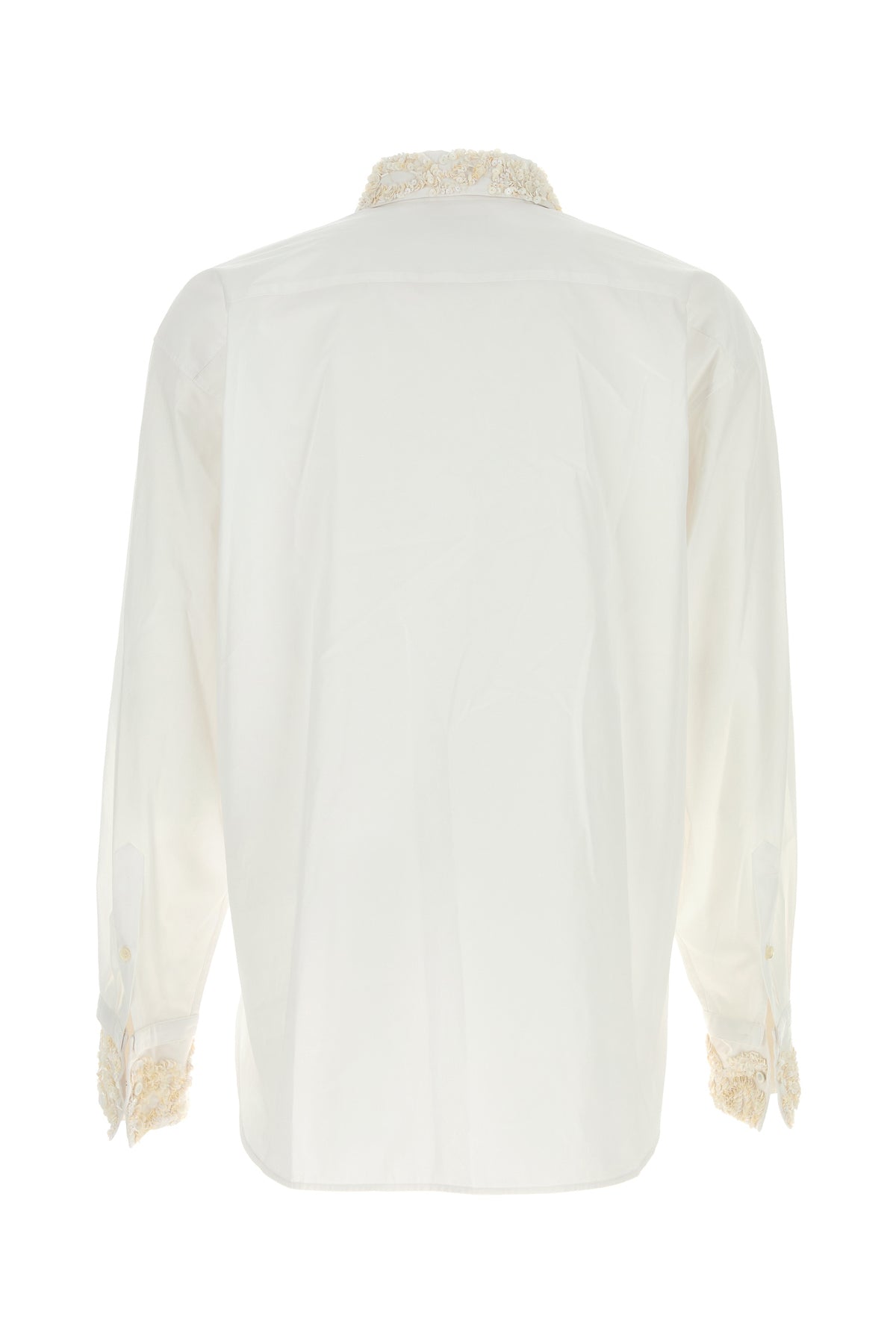 Camicia realizzata in popeline di puro cotone arricchita da paillettes sul colletto italiano e sui polsini.
