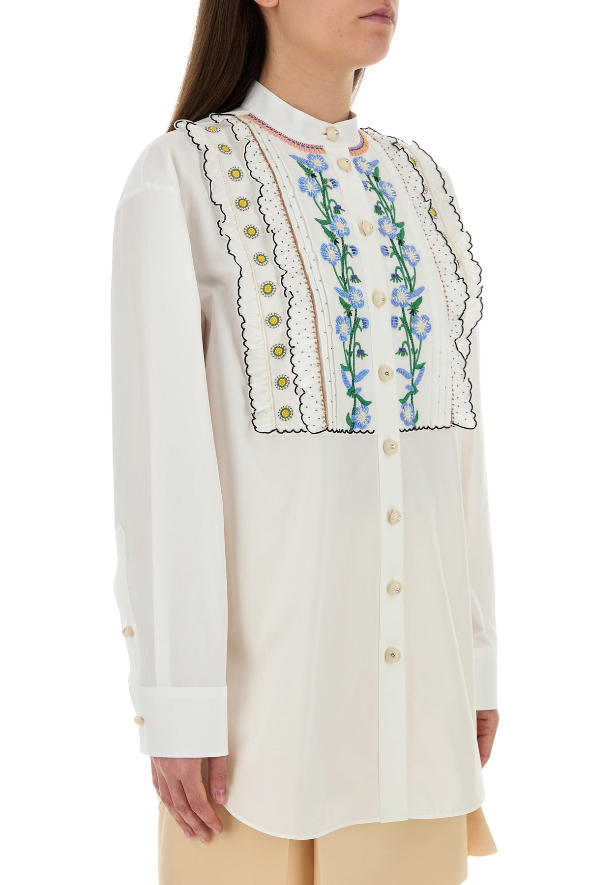 Camicia realizzata in popeline di puro cotone caratterizzata da particolari ricami floreali in perline sulla parte frontale.