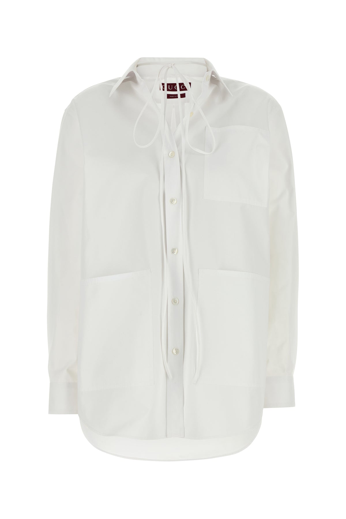 Camicia realizzata in popeline di puro cotone arricchita da applicazione logata tonale sul colletto a punte corte.