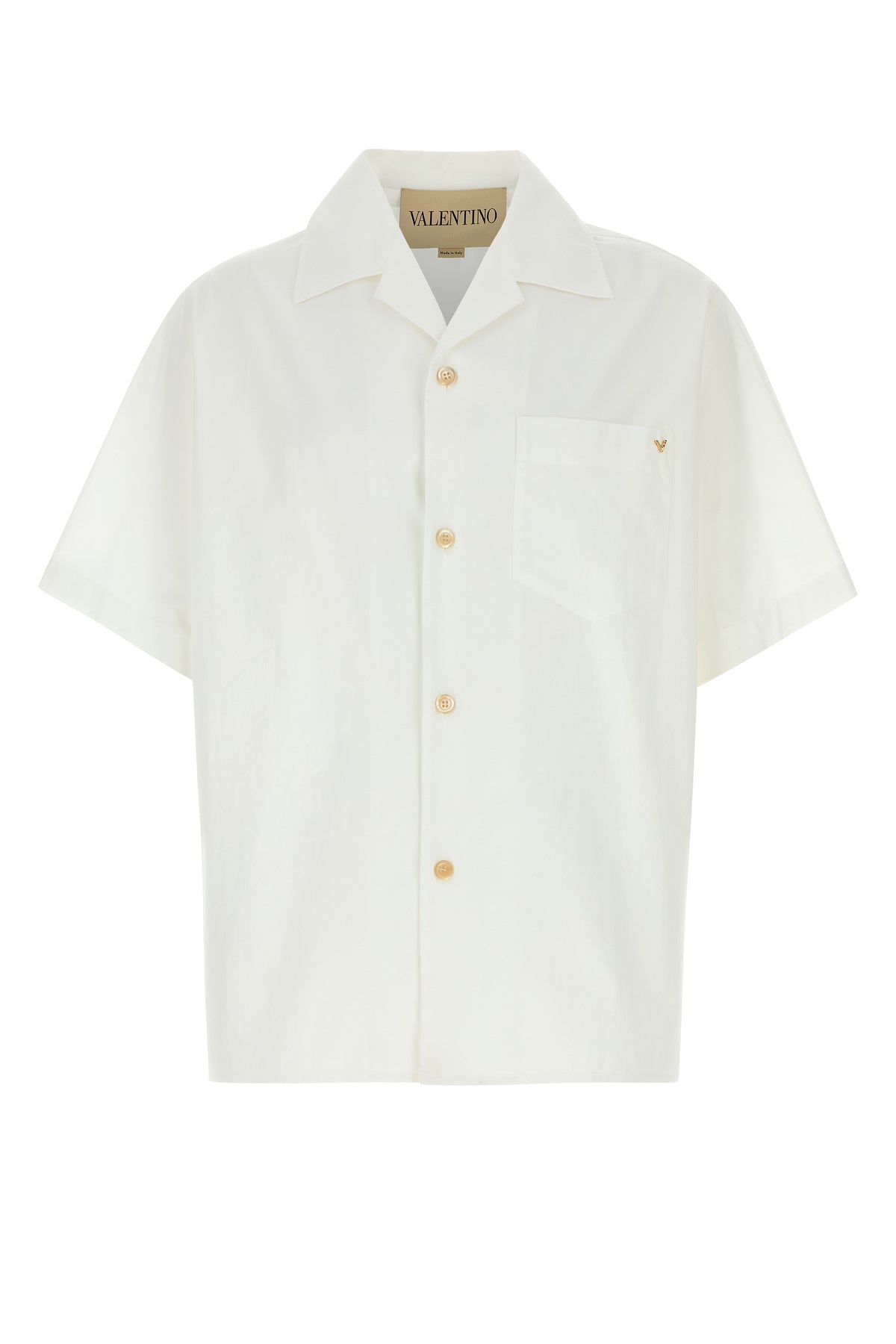Camicia a maniche corte realizzata in popeline di puro cotone arricchita da dettaglio metallico V sul petto.