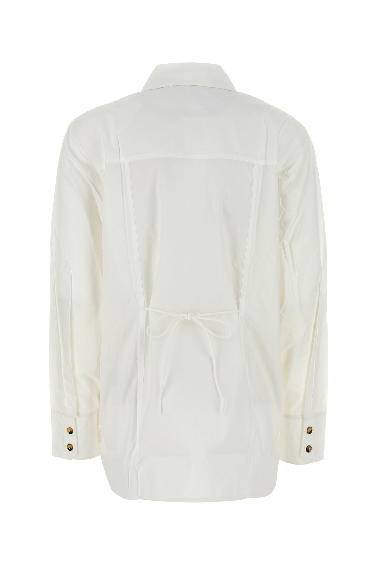 Camicia realizzata in popeline di puro cotone caratterizzata da lacci da annodare in vita.