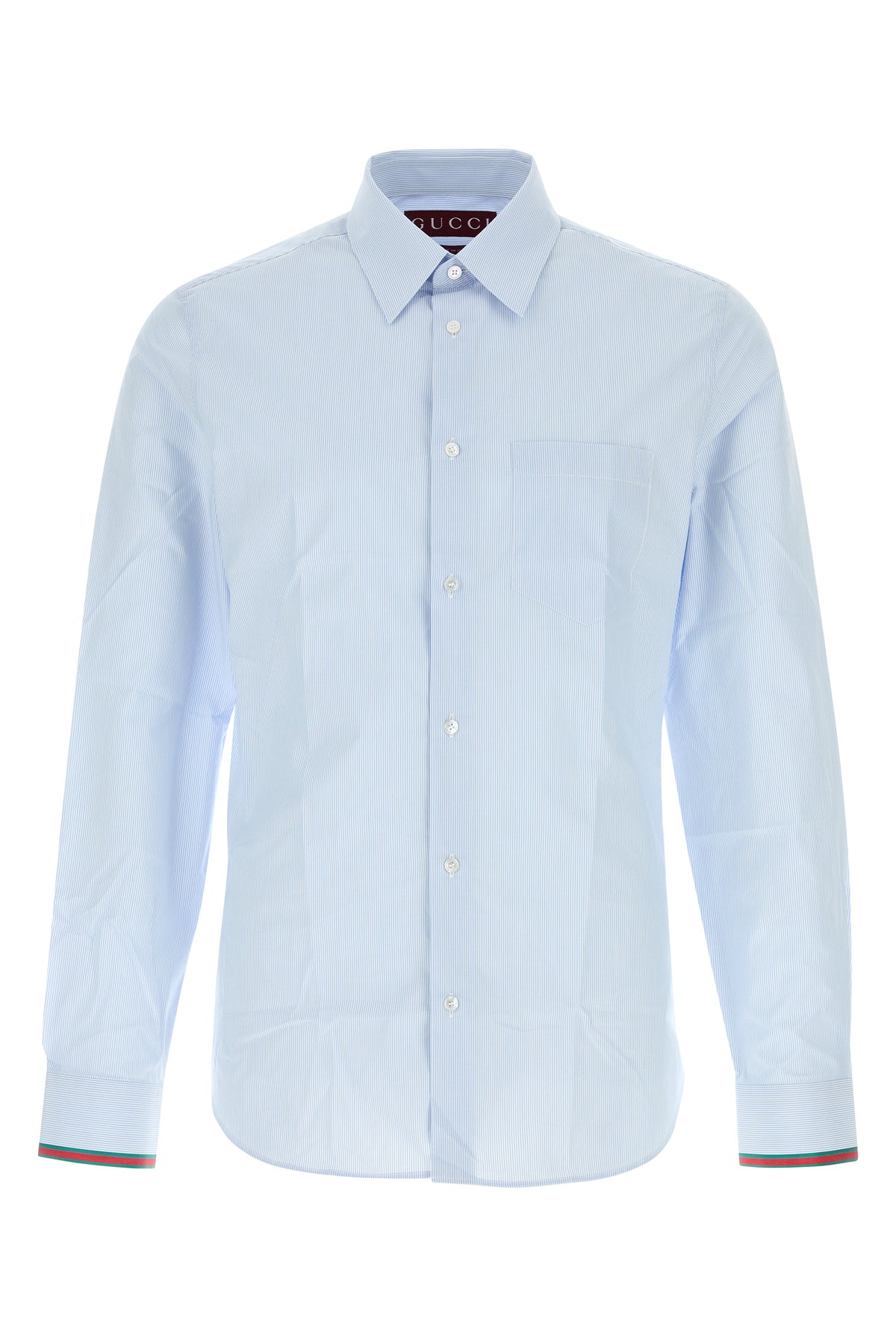 Camicia realizzata in popeline di puro cotone caratterizzata da ricamo a righe su tutta la superficie e ricamo Nastro Web sui polsini angolari con bottone.