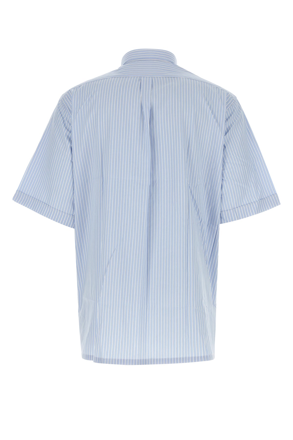 Camicia a maniche corte realizzata in popeline di puro cotone caratterizzata da ricamo a righe su tutta la superficie e ricamo logato sul petto.