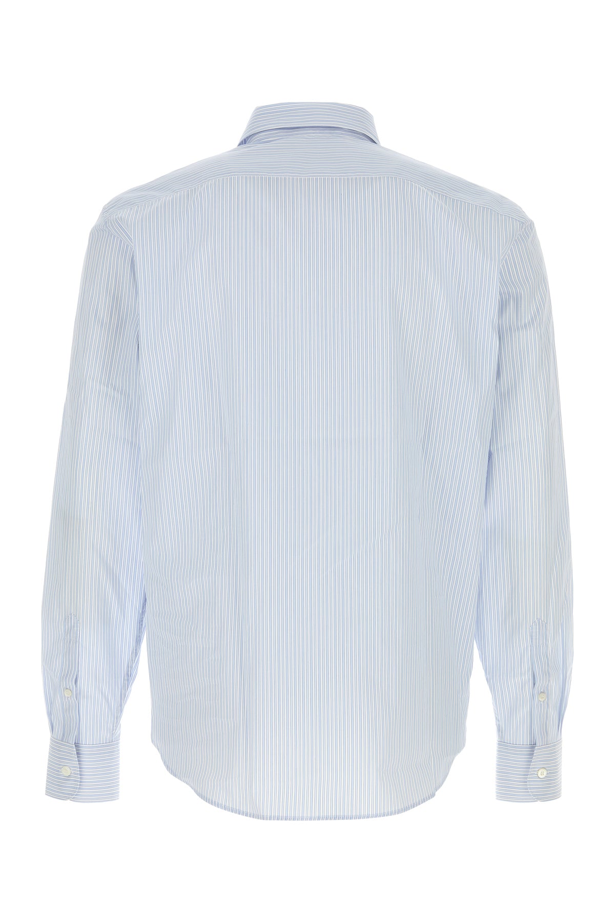 Camicia realizzata in popeline di puro cotone caratterizzata da ricamo a righe su tutta la superficie e logo ricamato sul petto.