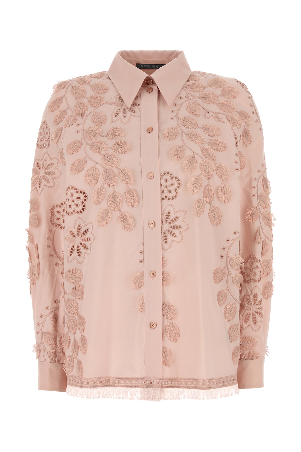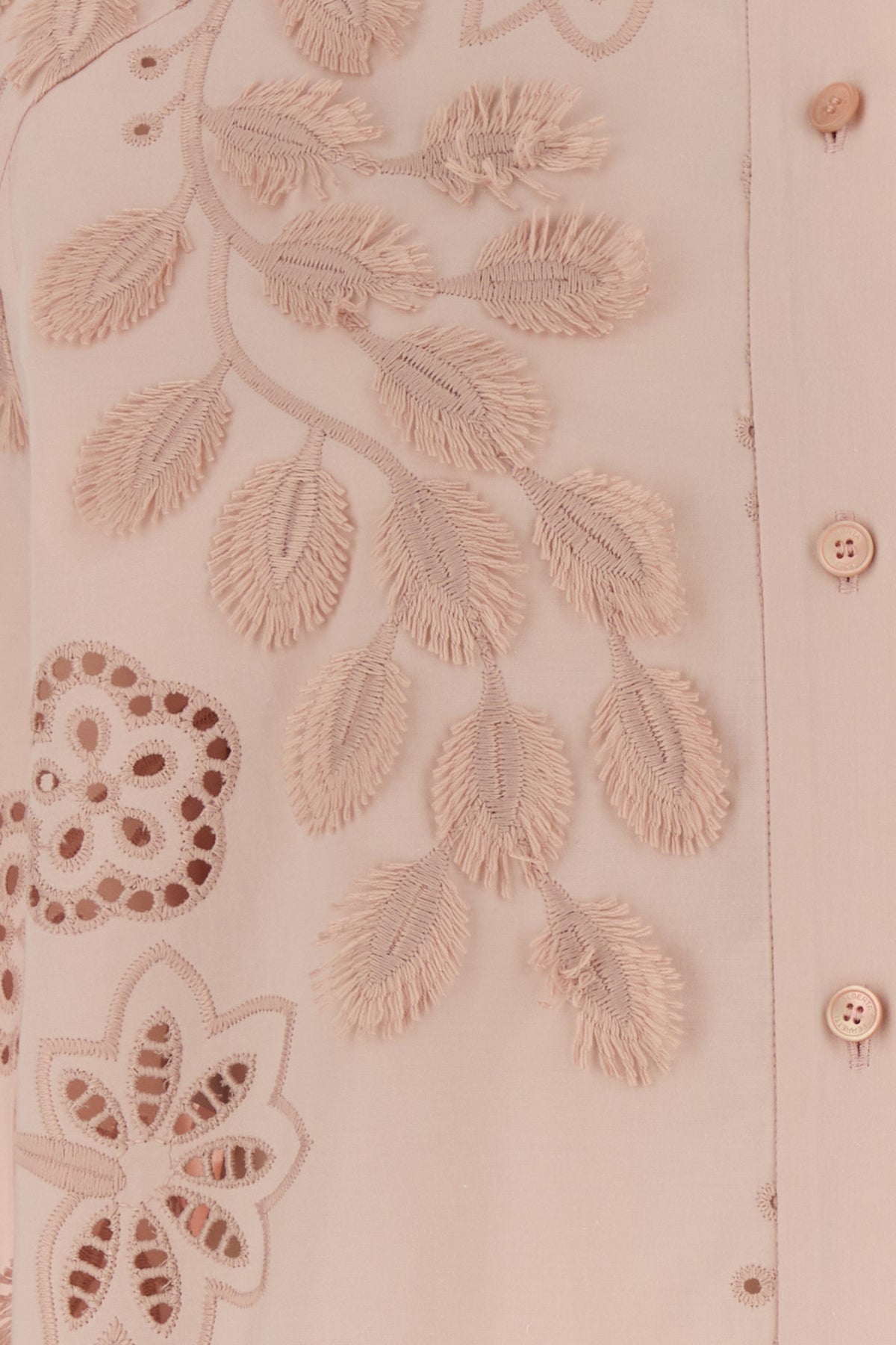 Camicia realizzata in popeline caratterizzata da particolare ricami floreali su tutta la superficie.