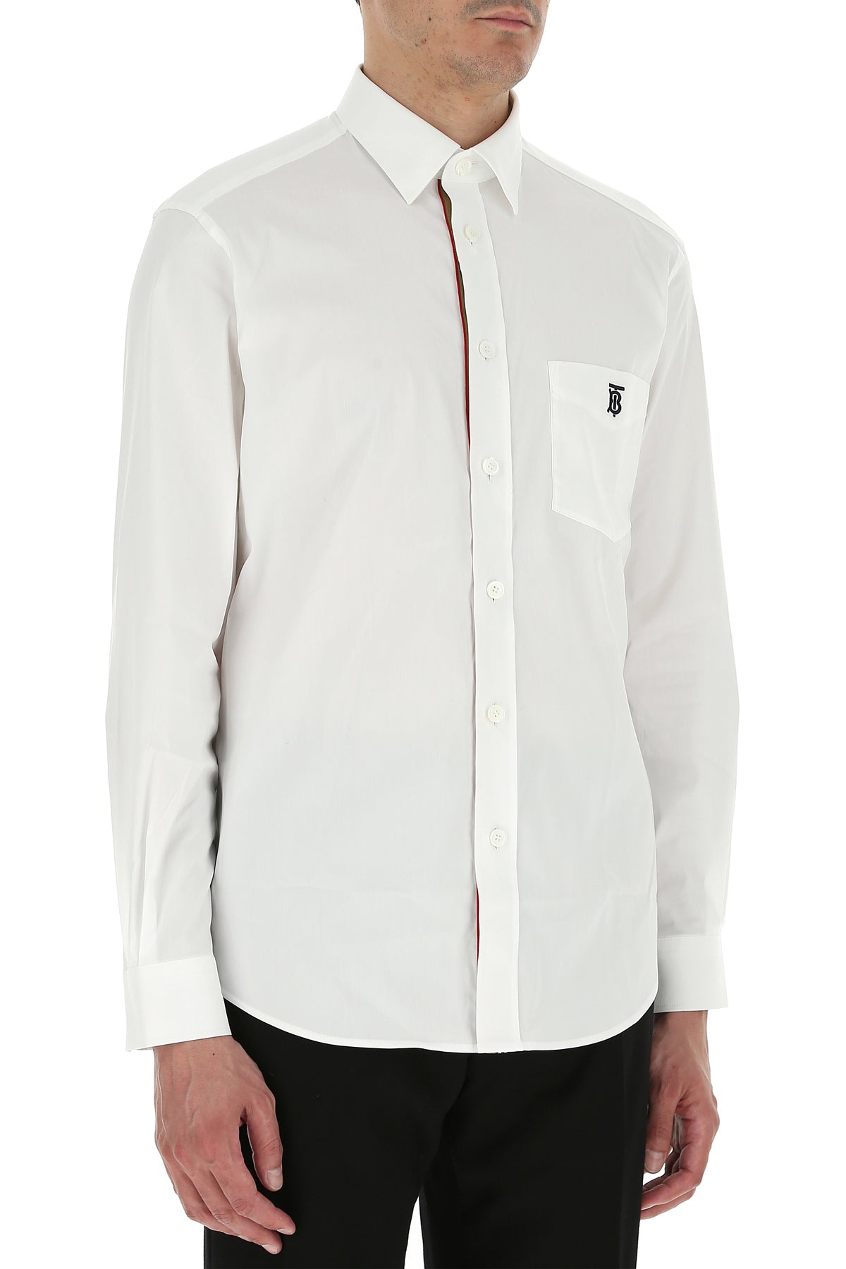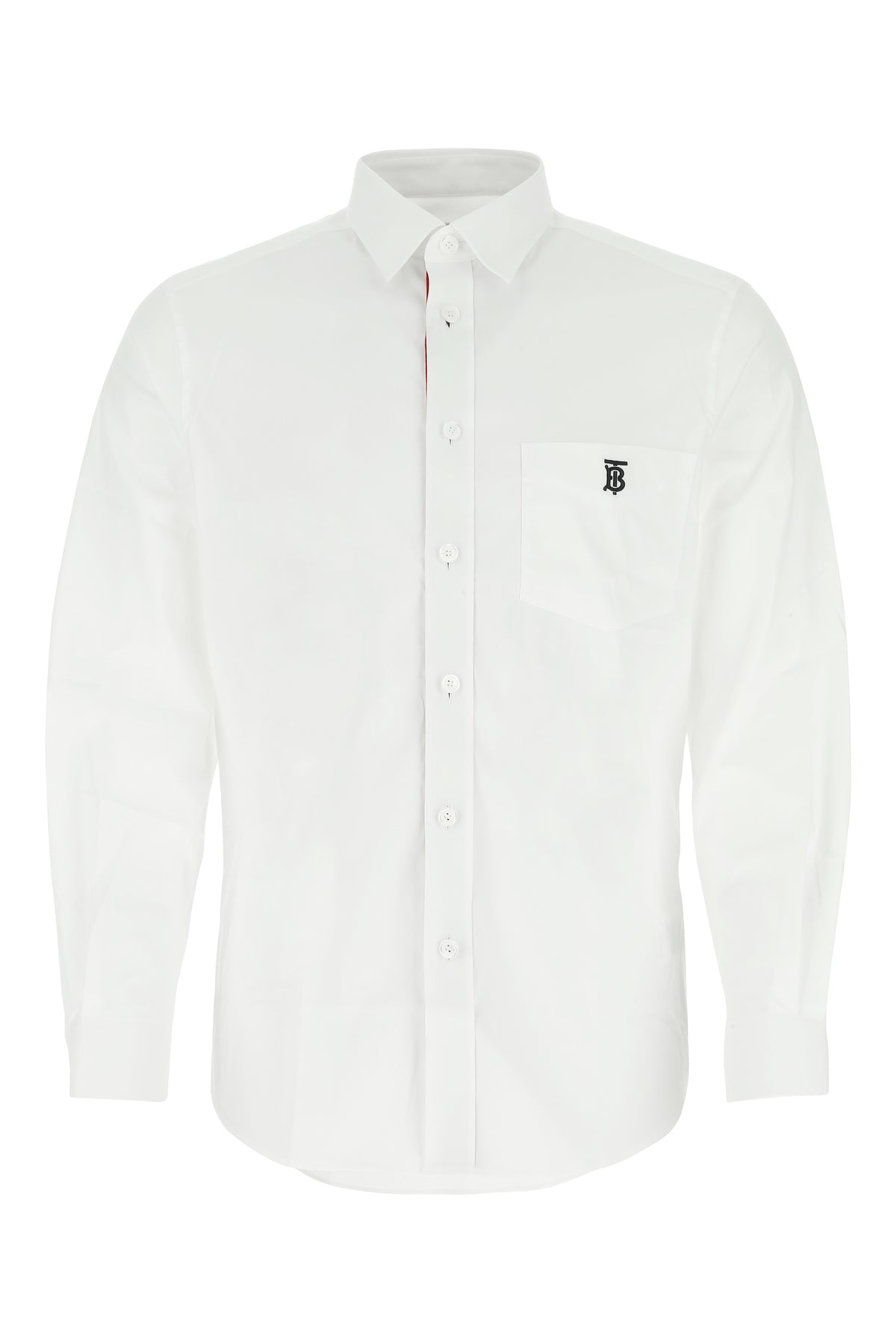 Camicia realizzata in popeline di misto cotone stretch caratterizzata da ricamo TB a contrasto sul petto.