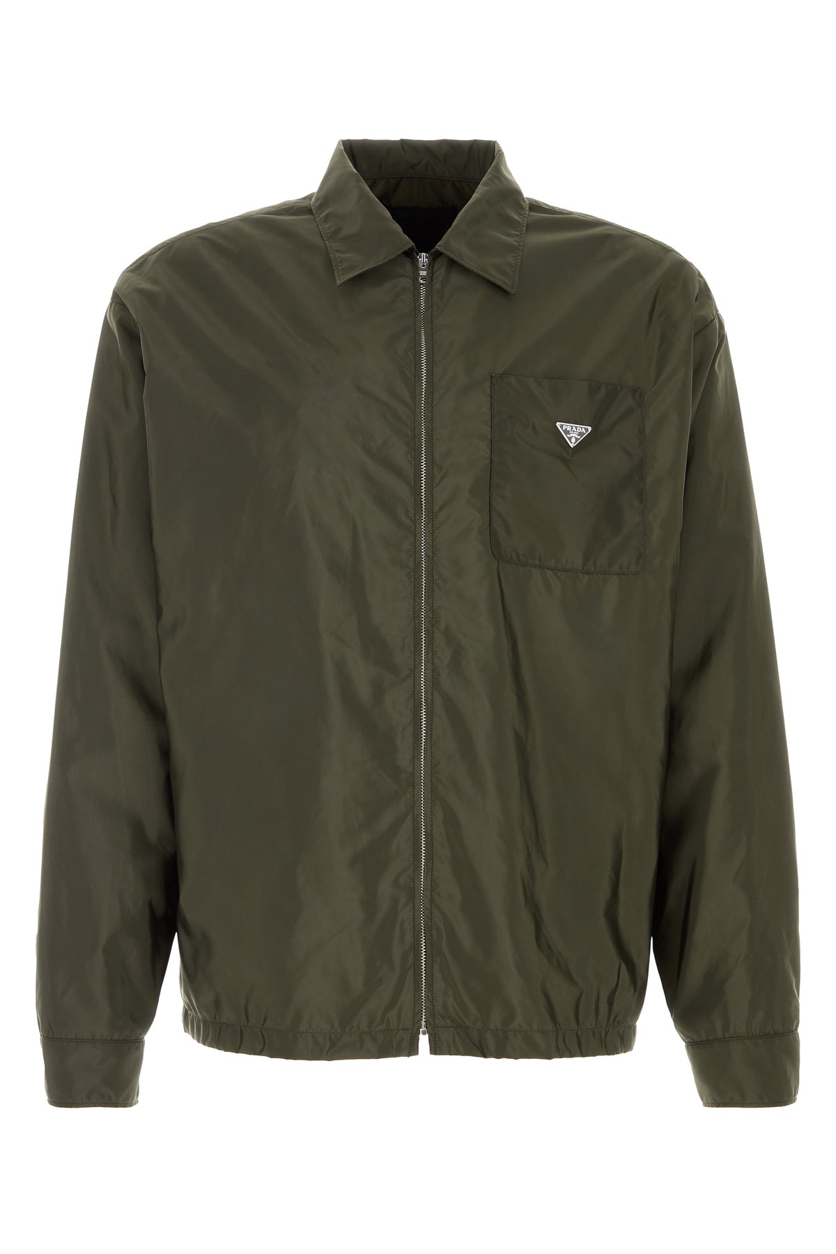 Camicia realizzata in Re-Nylon arricchita da iconico triangolo logato in metallo sul petto.
