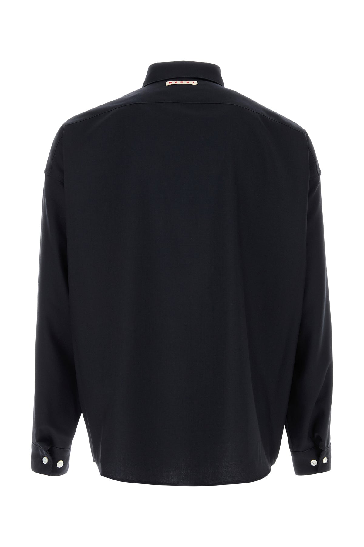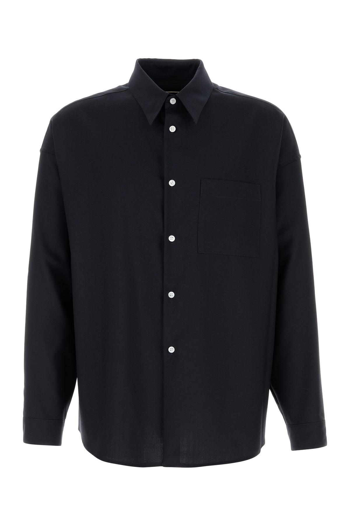 Camicia realizzata in twill di lana vergine arricchita da etichetta logata sul retro.