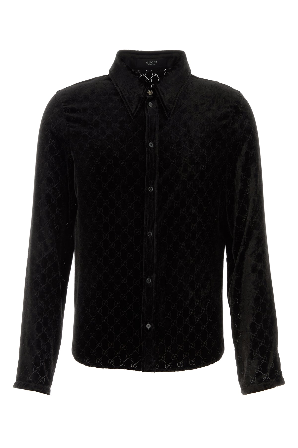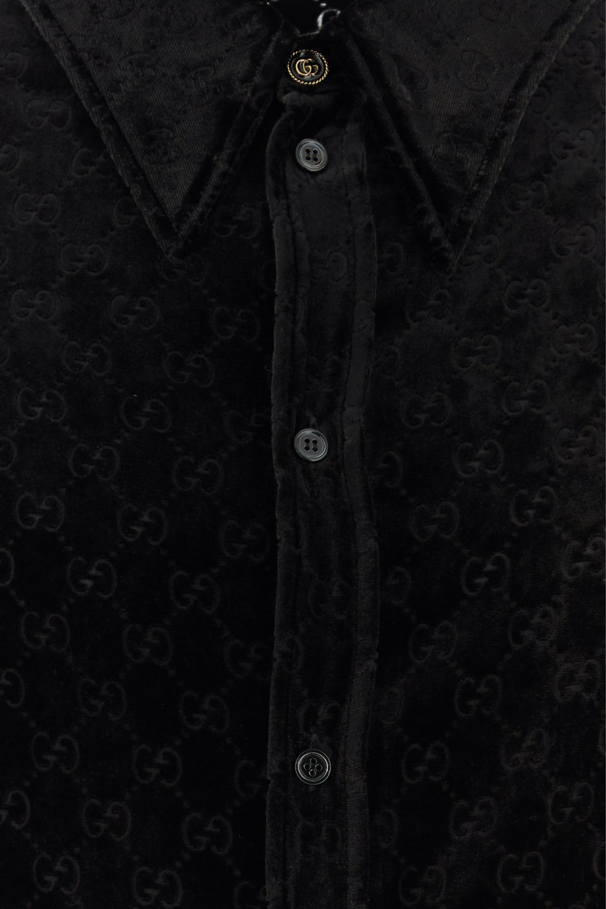 Camicia realizzata in velluto stretch caratterizzato da motivo GG impresso su tutta la superficie.
