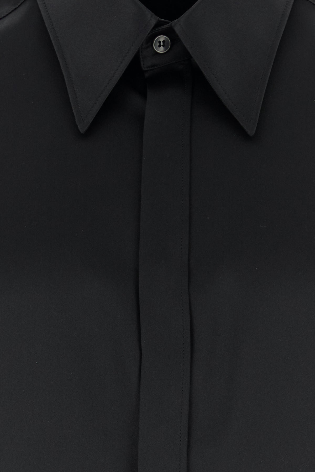 Camicia realizzata in raso di pura seta caratterizzata da colletto italiano.