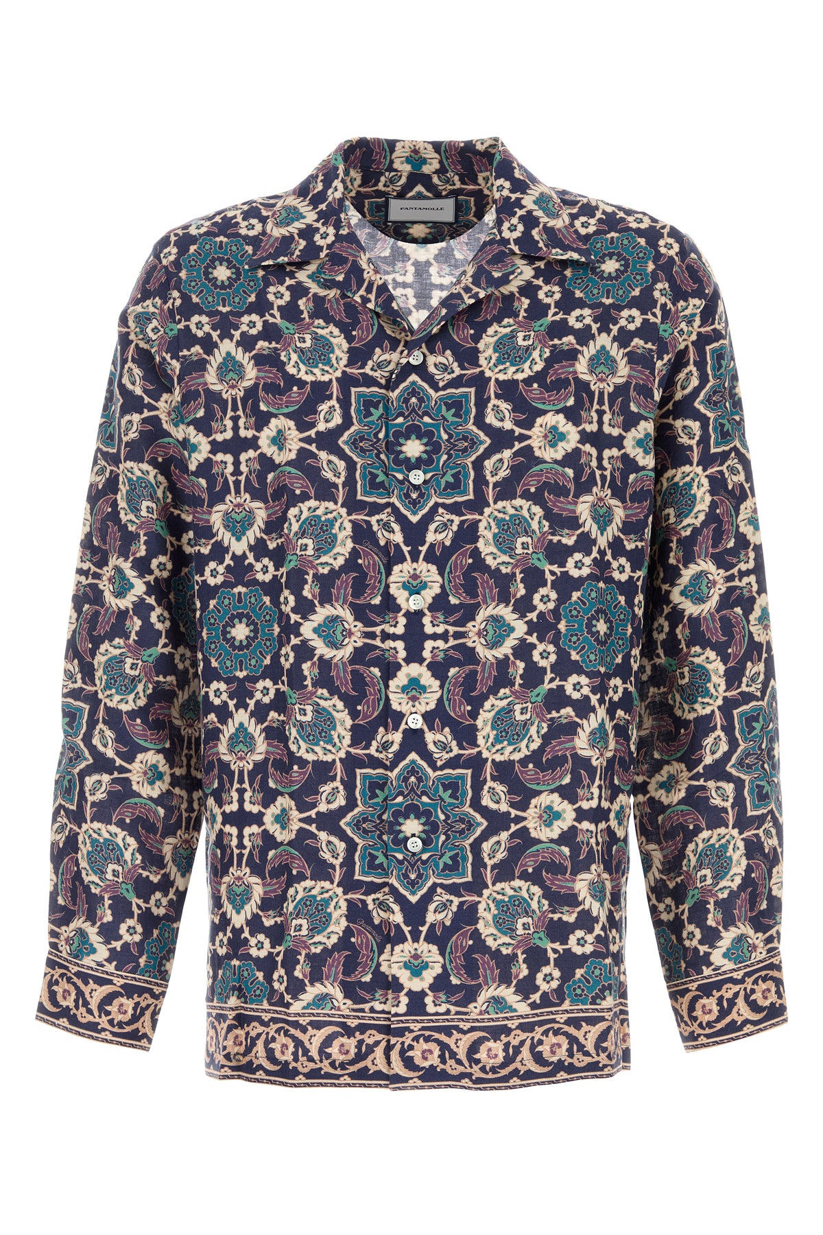 Camicia realizzata in puro lino caratterizzata da particolare stampa su tutta la superficie.