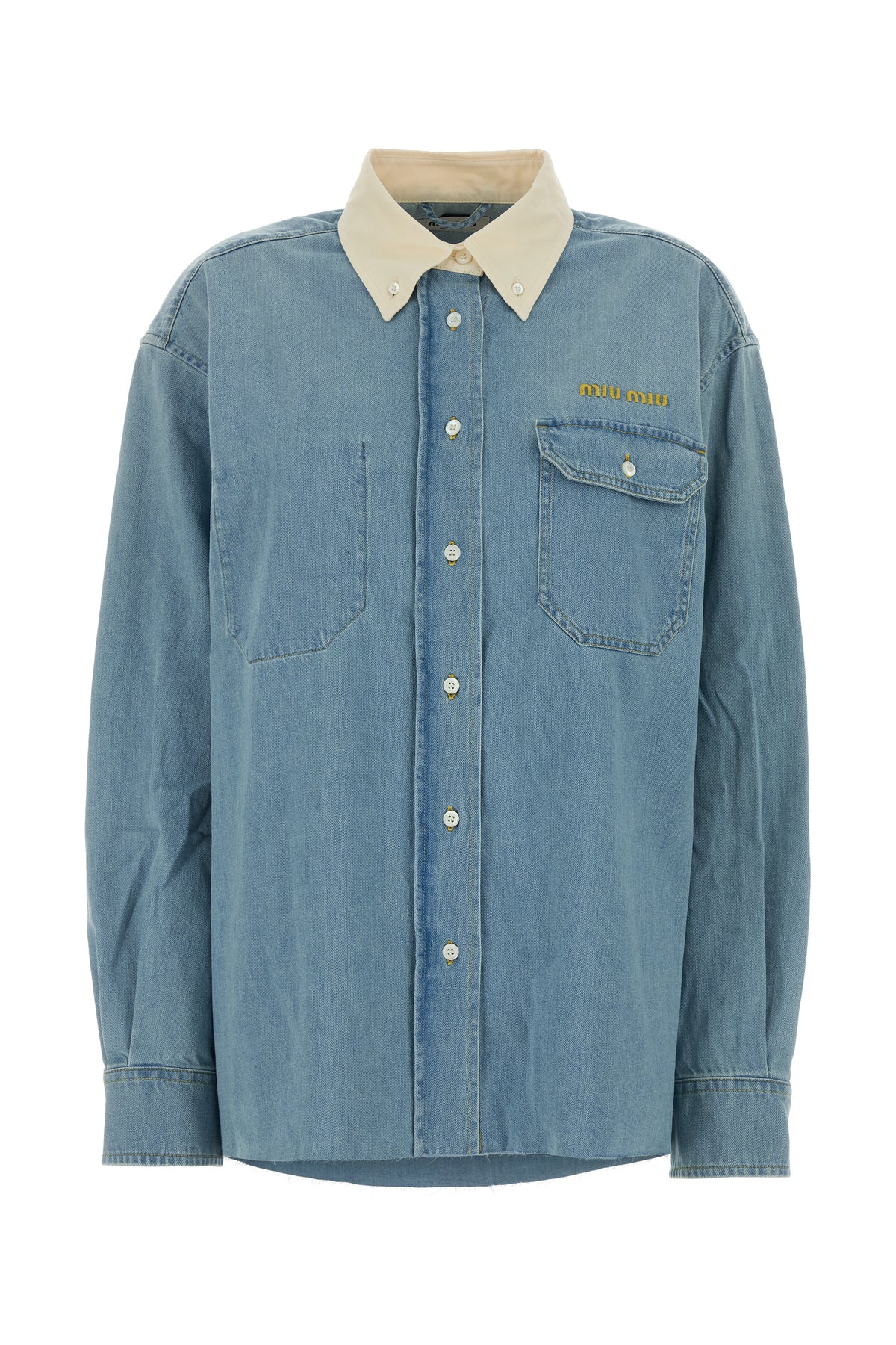 Camicia oversize realizzata in denim di puro cotone caratterizzata da logo ricamato sul petto.