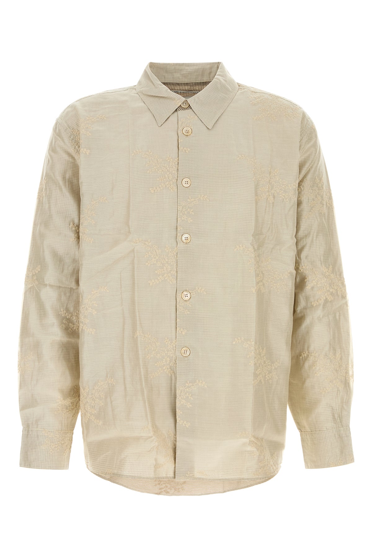 Camicia oversize realizzata in jersey caratterizzata da ricamo floreale e ricamo a quadri su tutta la superficie.