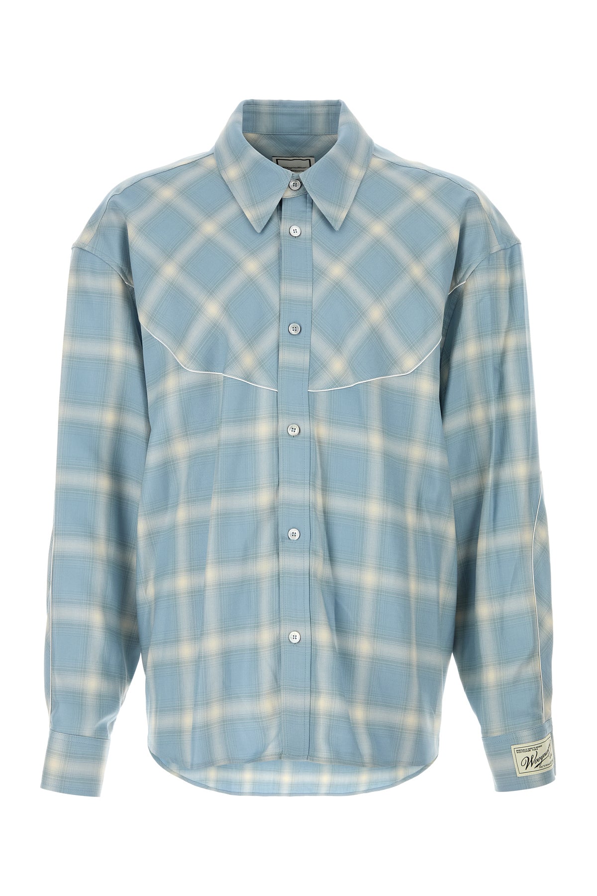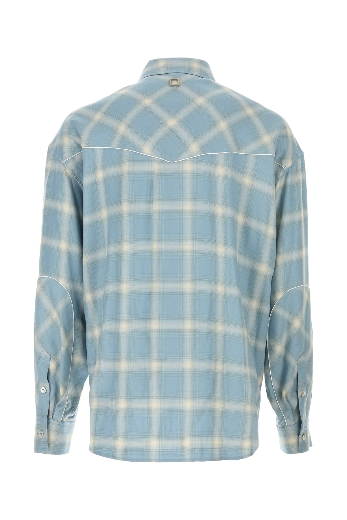 Camicia oversize realizzata in jersey caratterizzata da ricamo a quadri su tutta la superficie arricchita da etichetta logata sul polsini e dettaglio metallico logato sul retro.
