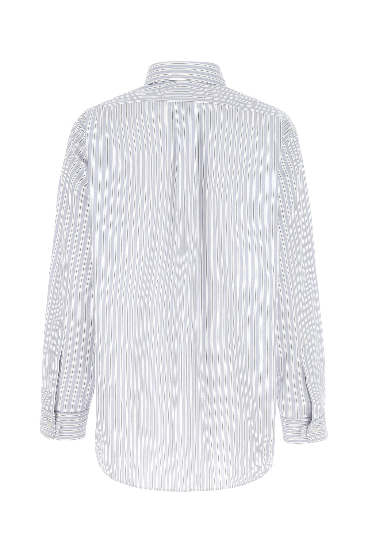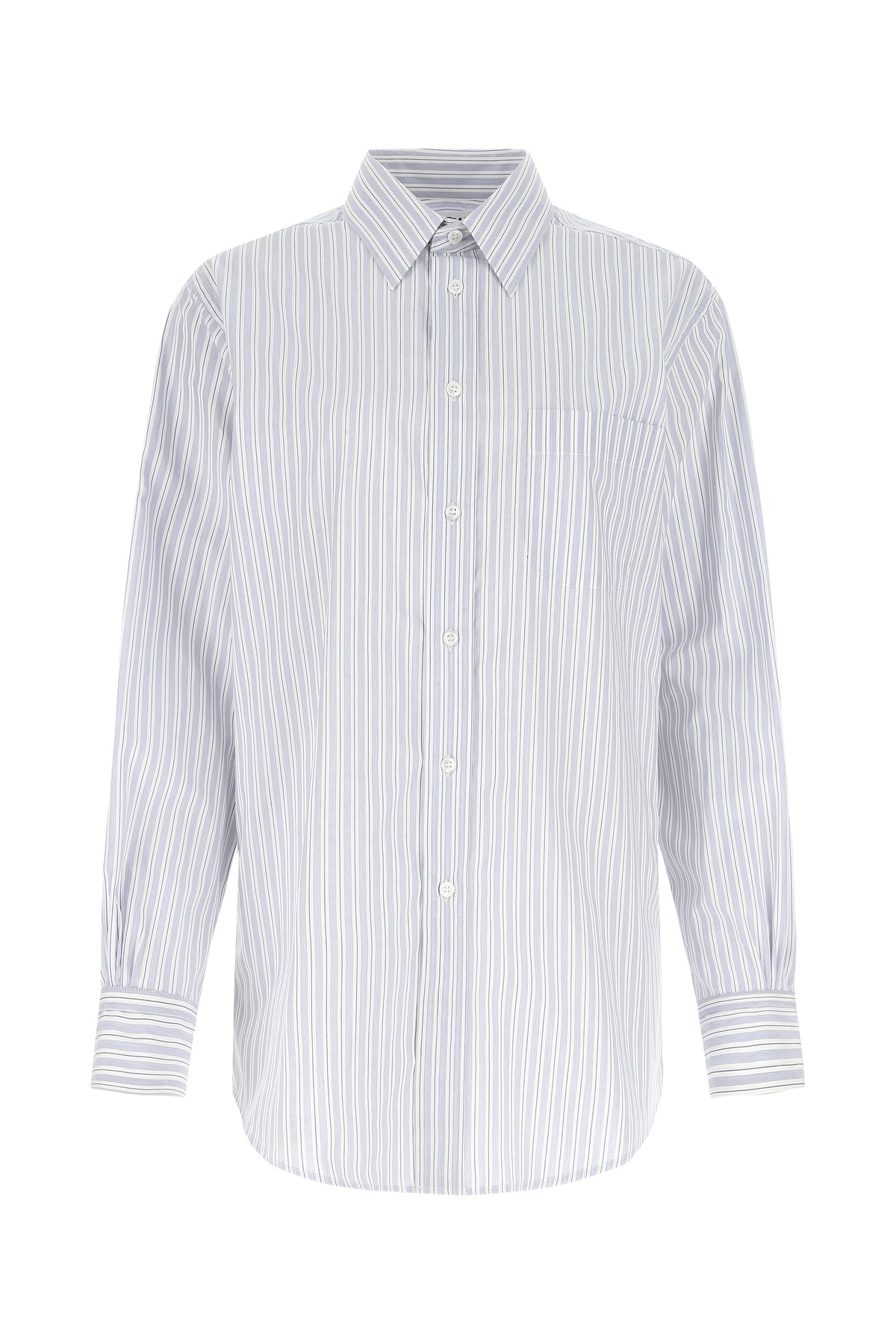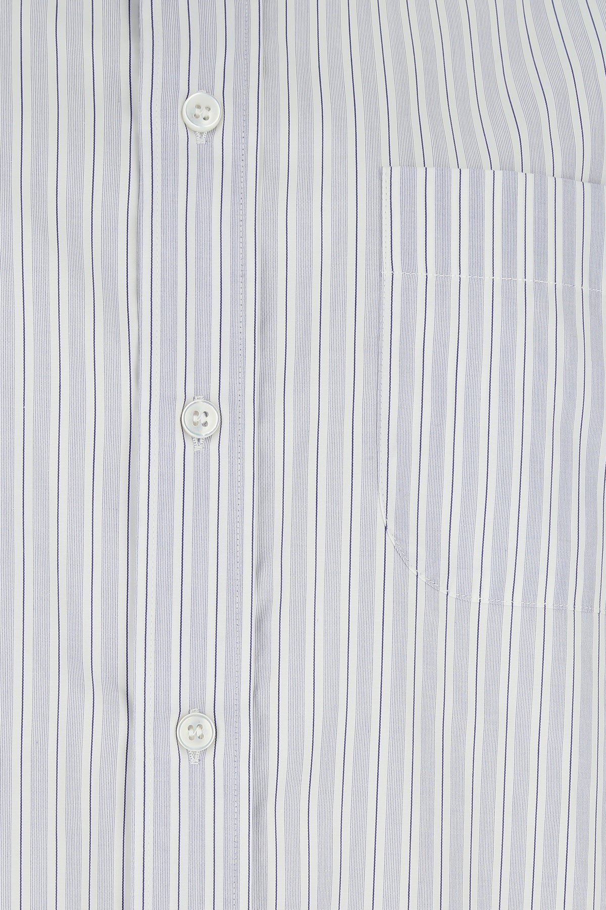 Camicia oversize realizzata in popeline di puro cotone caratterizzata da ricamo gessato su tutta la superficie e cuciture a contrasto sul retro.