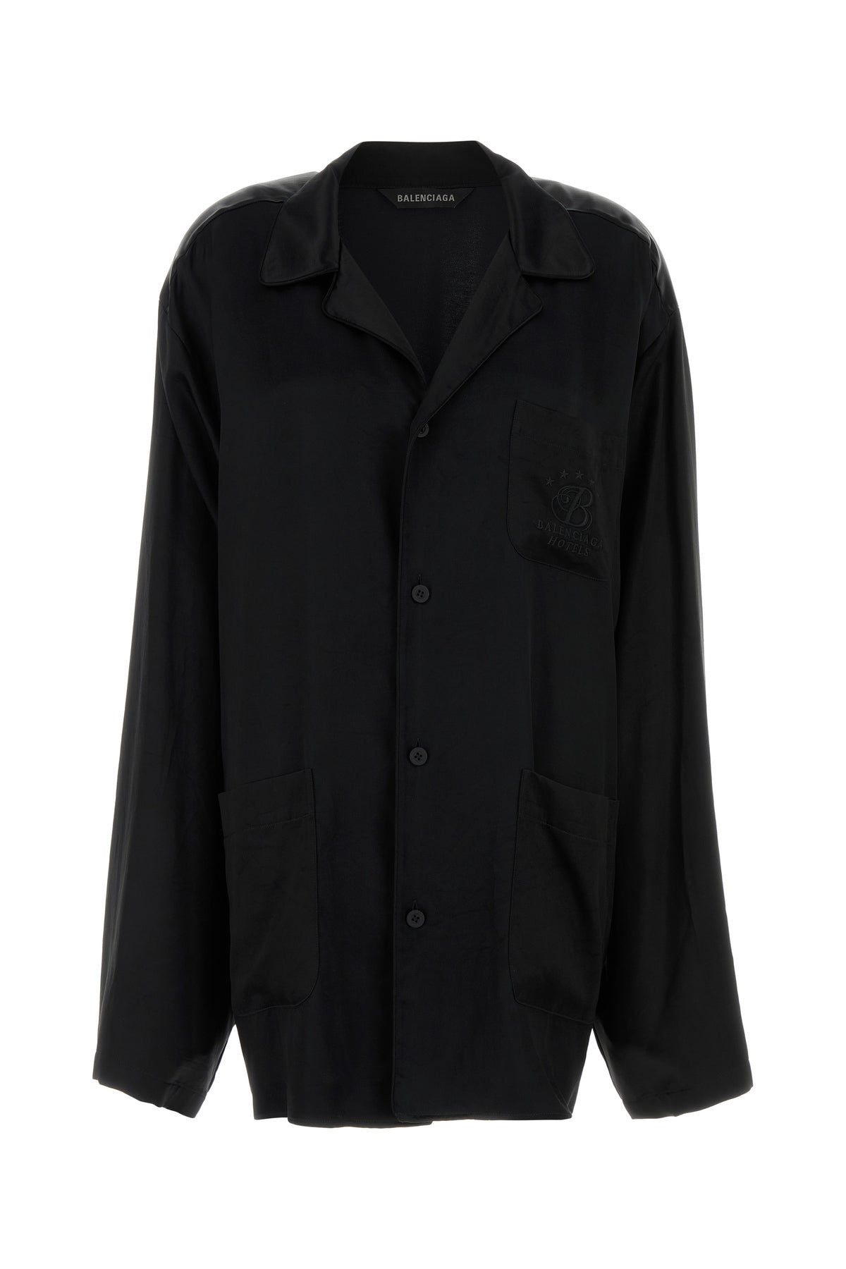 Camicia oversize realizzata in raso caratterizzata da ricamo logato tonale sul petto.