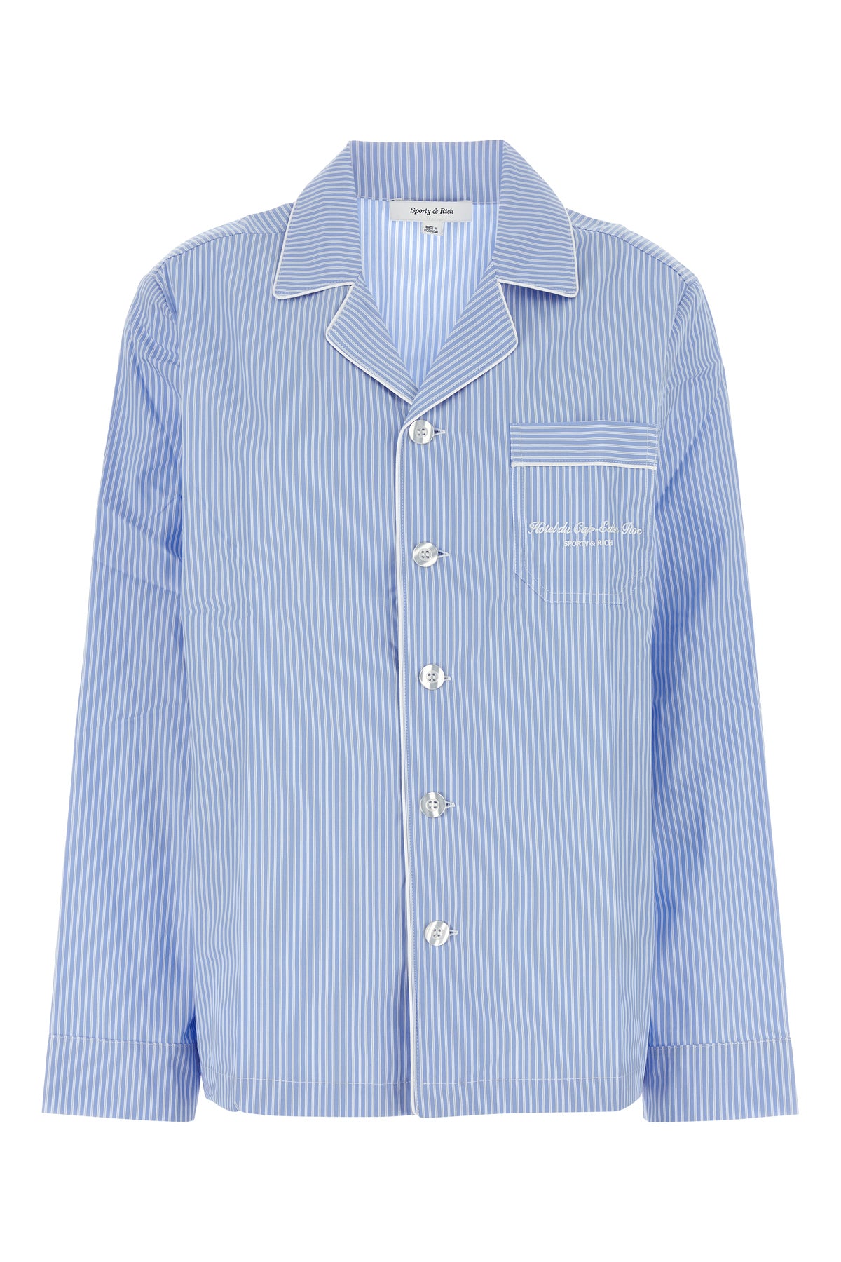 Camicia pigiama realizzata in puro cotone caratterizzata da ricamo a righe su tutta la superficie e ricamo logato sul petto.