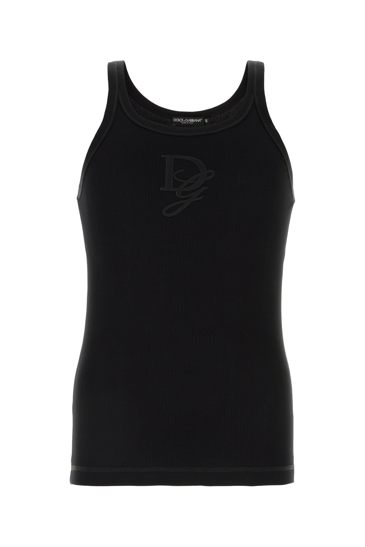 Canotta realizzata in puro cotone a costine arricchita da applicazione logata tonale sulla parte frontale.