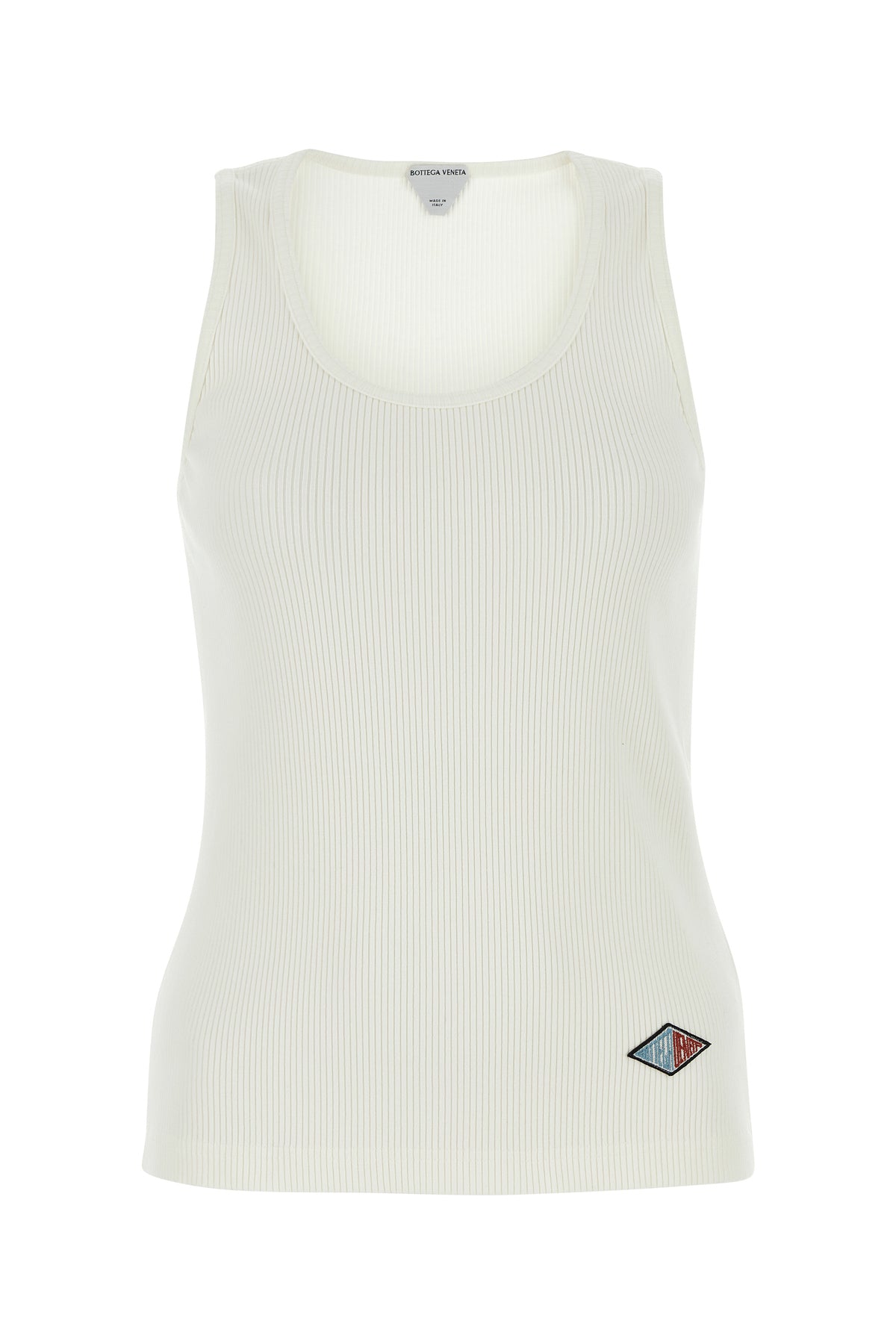 Canotta realizzata in cotone stretch a costine arricchita da applicazione logata a contrasto sul fondo.