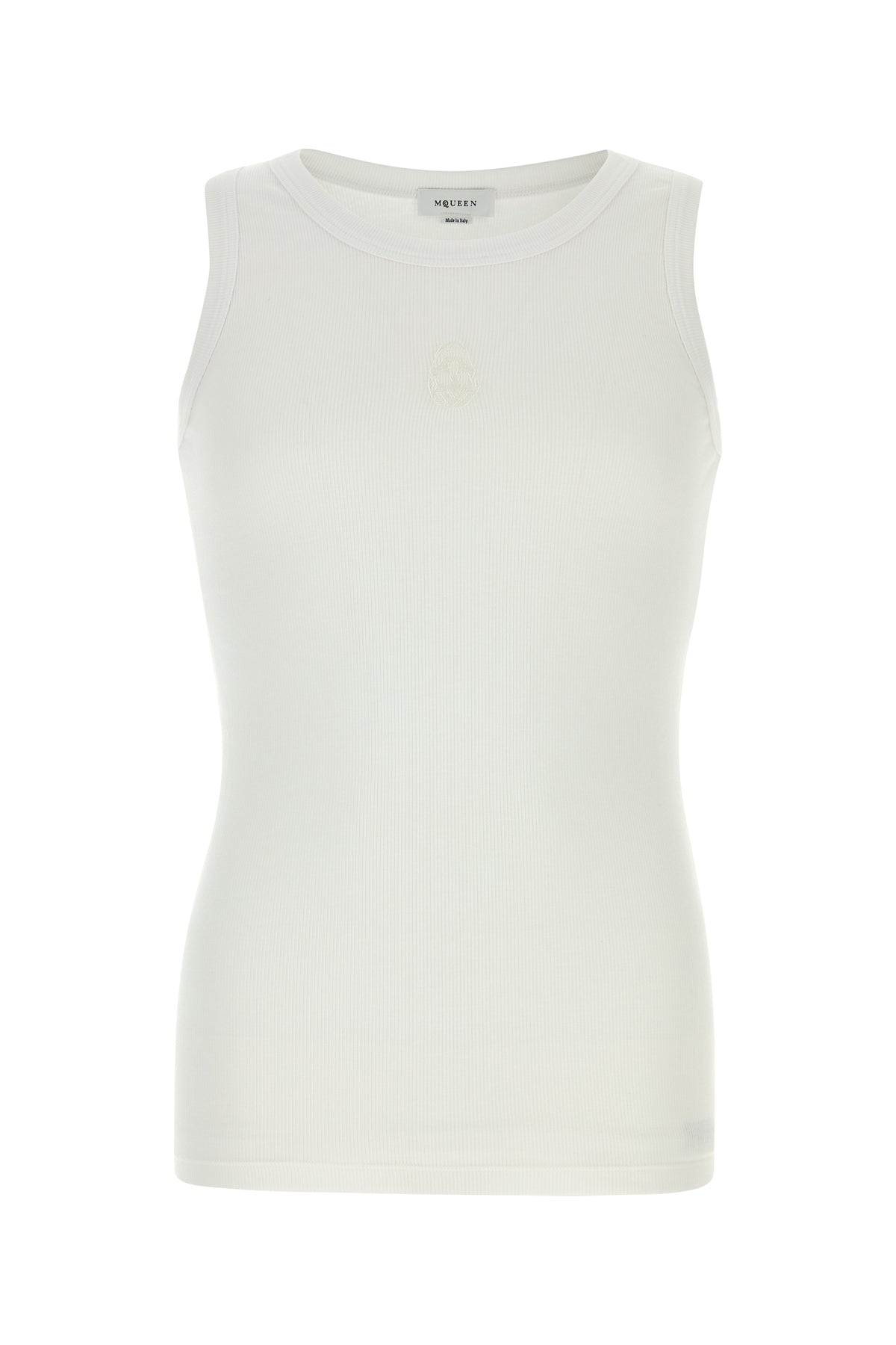Canotta realizzata in cotone stretch a costine caratterizzata da Skull ricamato tonale sulla parte frontale.
