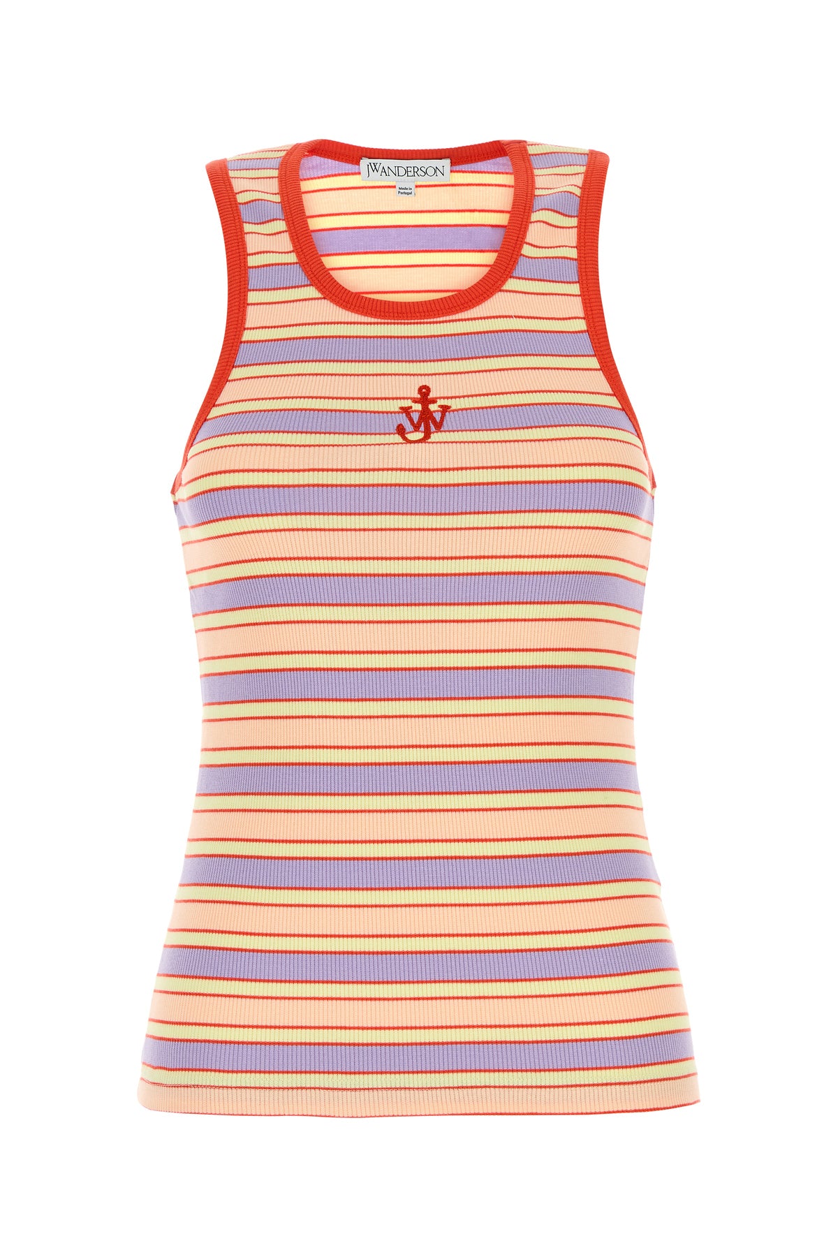 Canotta realizzata in cotone stretch caratterizzata da stampa a righe su tutta la superficie e logo ricamato sul petto.