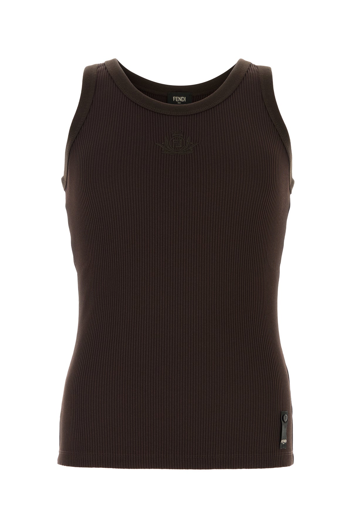 Canotta realizzata in nylon stretch a costine caratterizzata da ricamo Fendi Crest tonale sul petto.