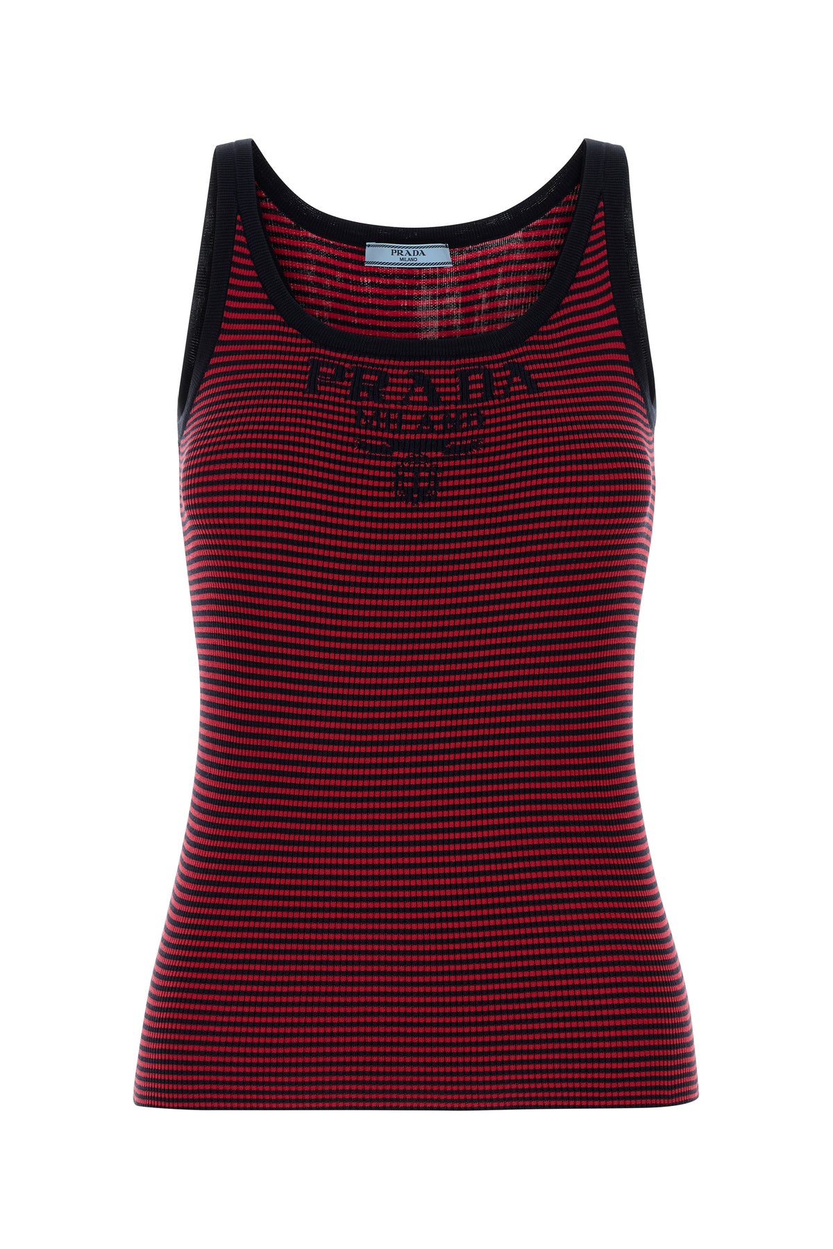 Canotta realizzata in pura seta riciclata caratterizzata da logo ricamato sulla parte frontale e ricamo a righe su tutta la superficie.
