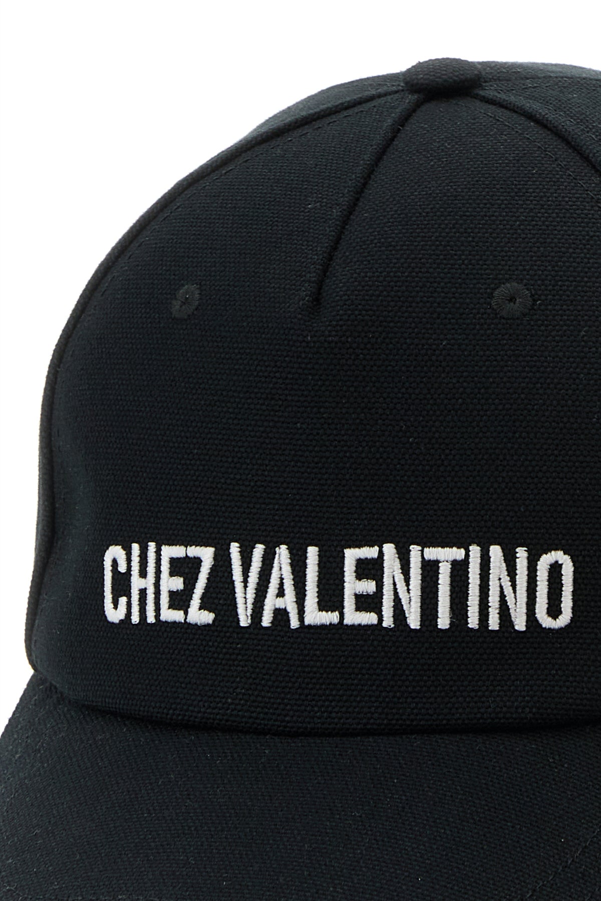 Cappello da baseball realizzato in puro cotone caratterizzato da ricamo Chez Valentino a contrasto sulla parte frontale.