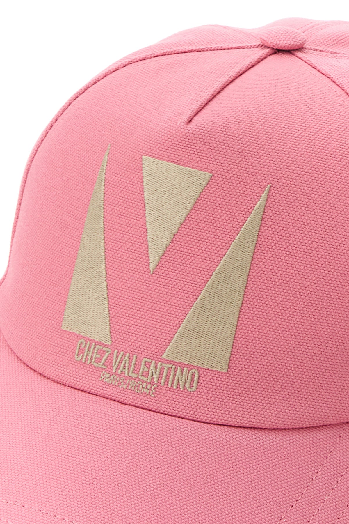 Cappello da baseball realizzato in puro cotone caratterizzato da ricamo Chez Valentino a contrasto sulla parte frontale.