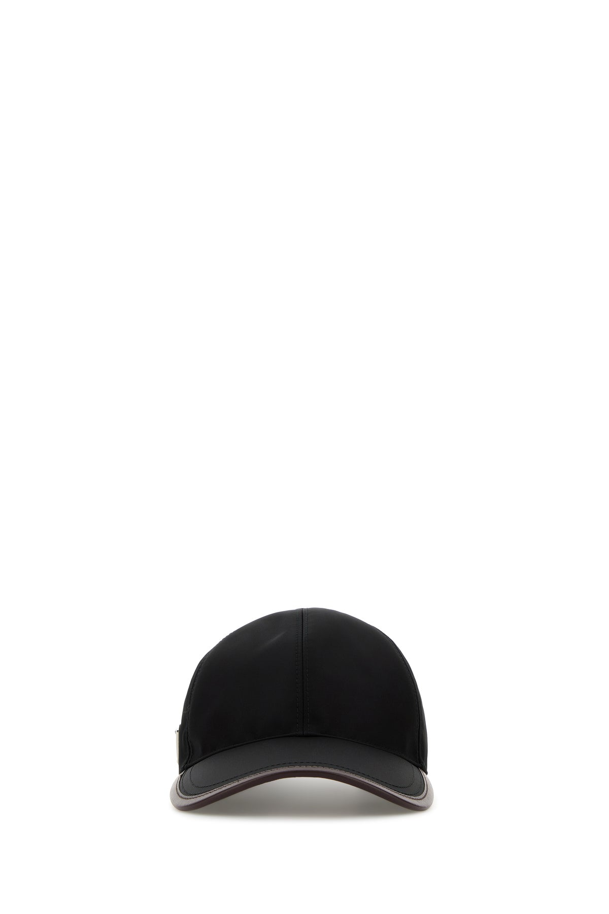 Cappello da baseball realizzato in Re-Nylon con profilatura in pelle arricchito da iconico triangolo logato in metallo sul lato.
