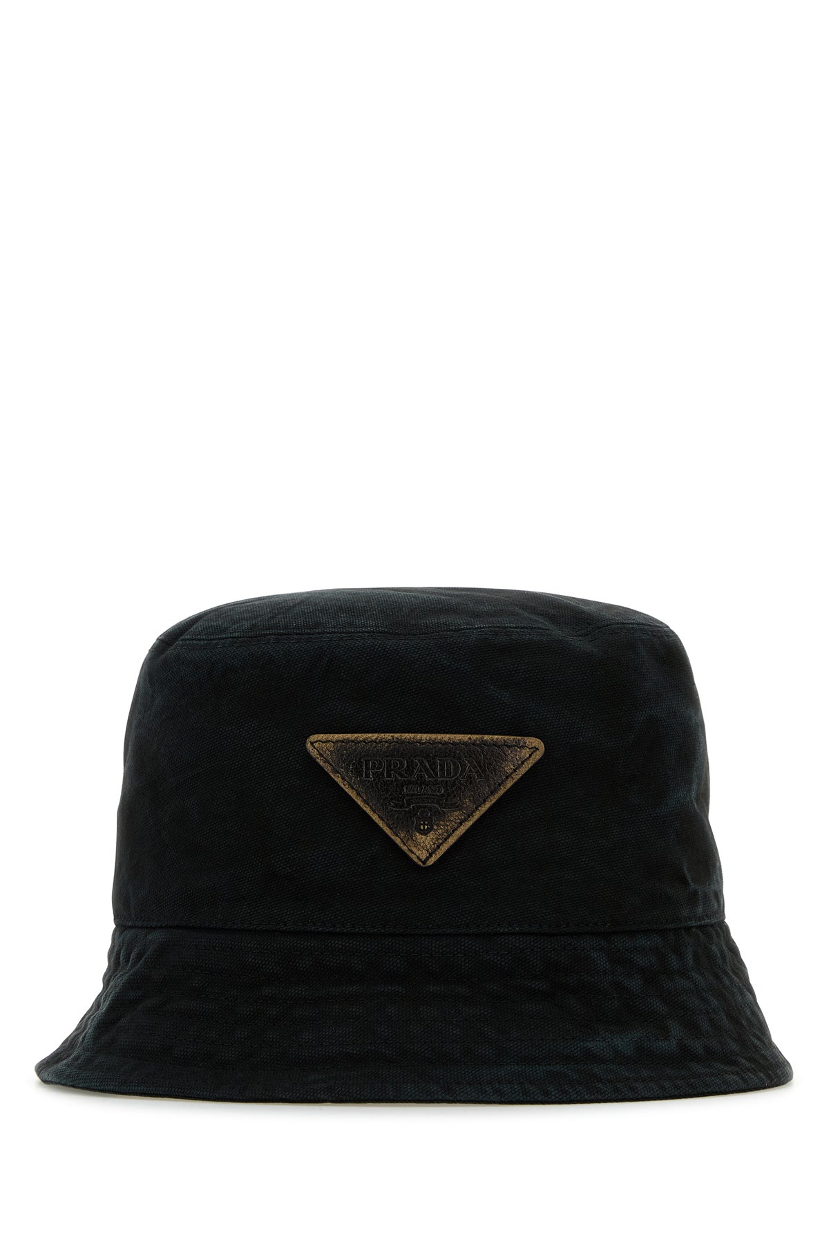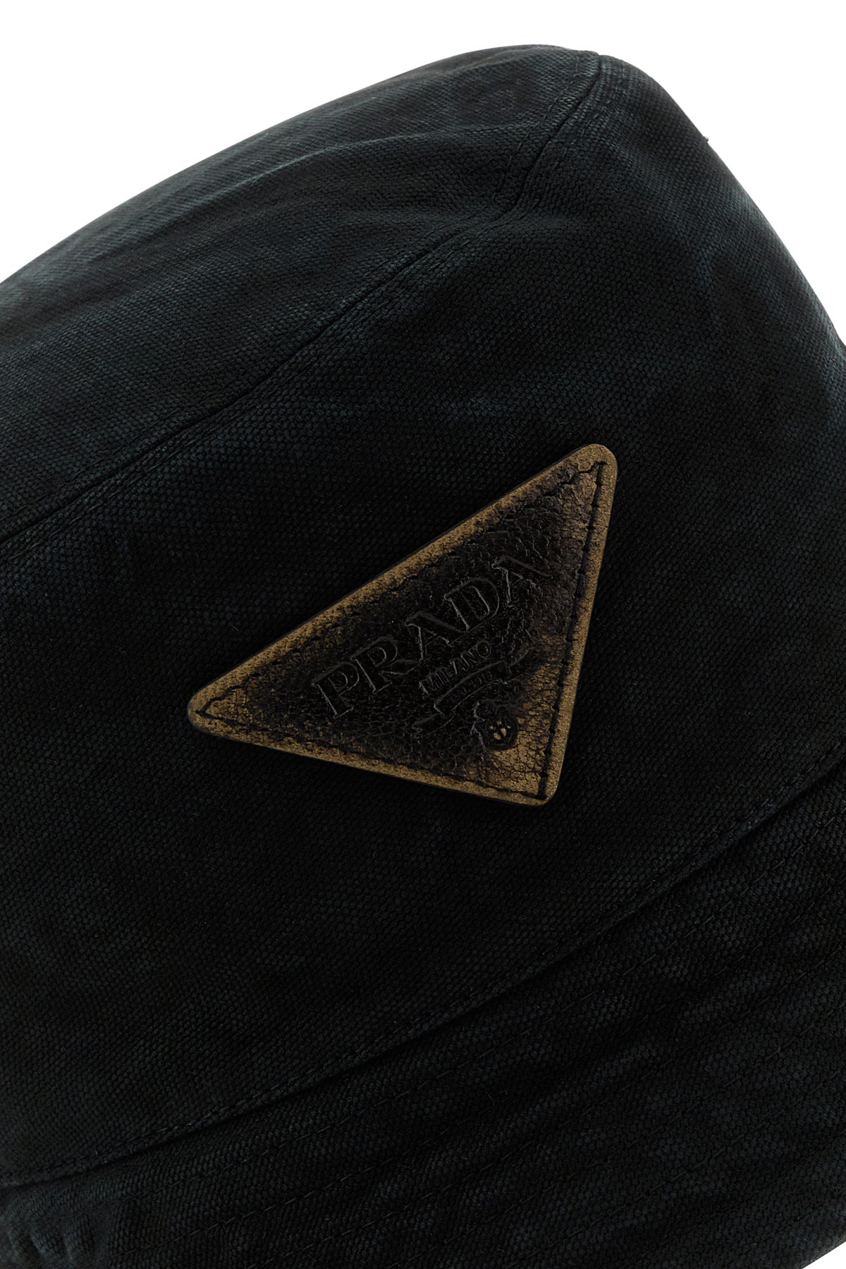 Cappello da pescatore realizzato in puro cotone slavato arricchito da iconico triangolo logato in pelle sul lato.