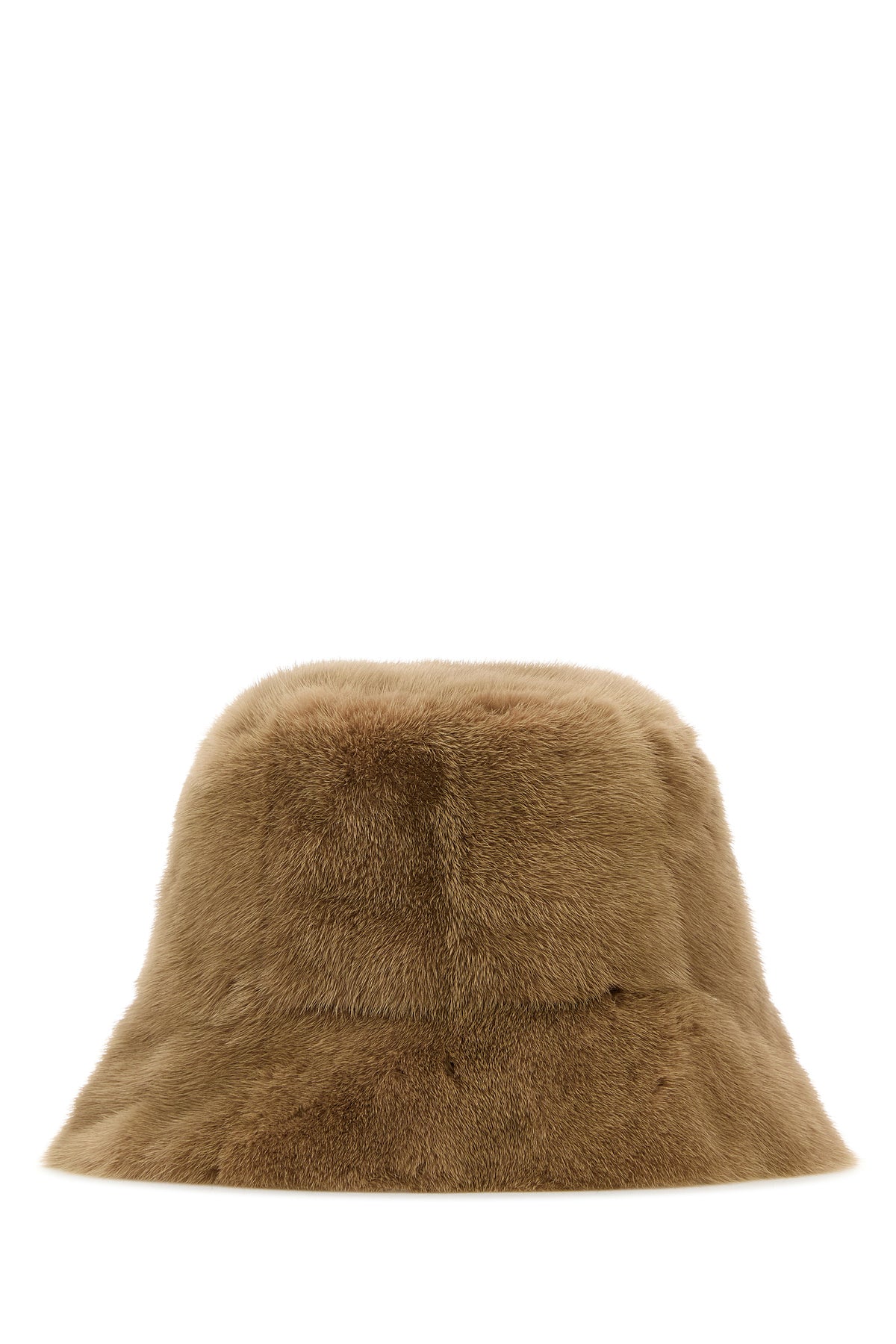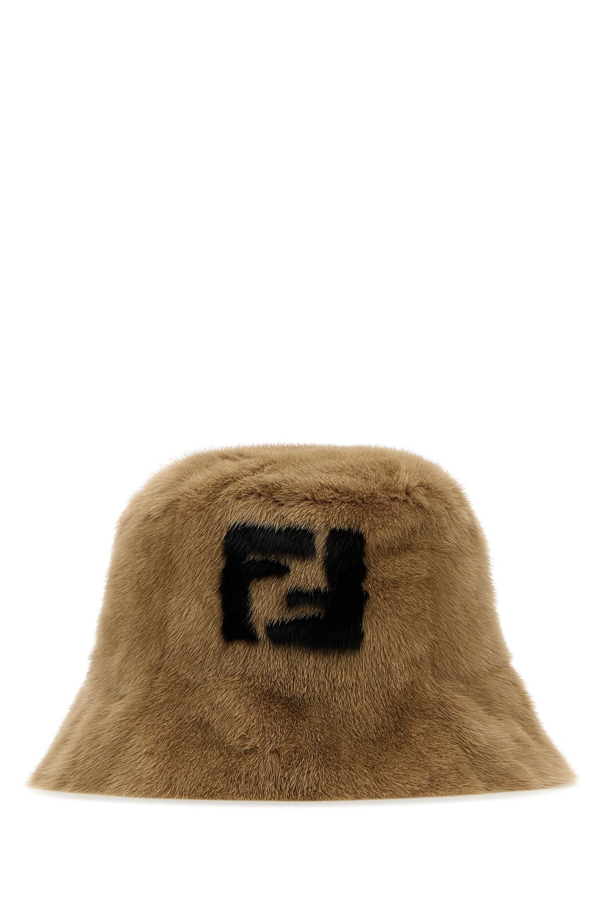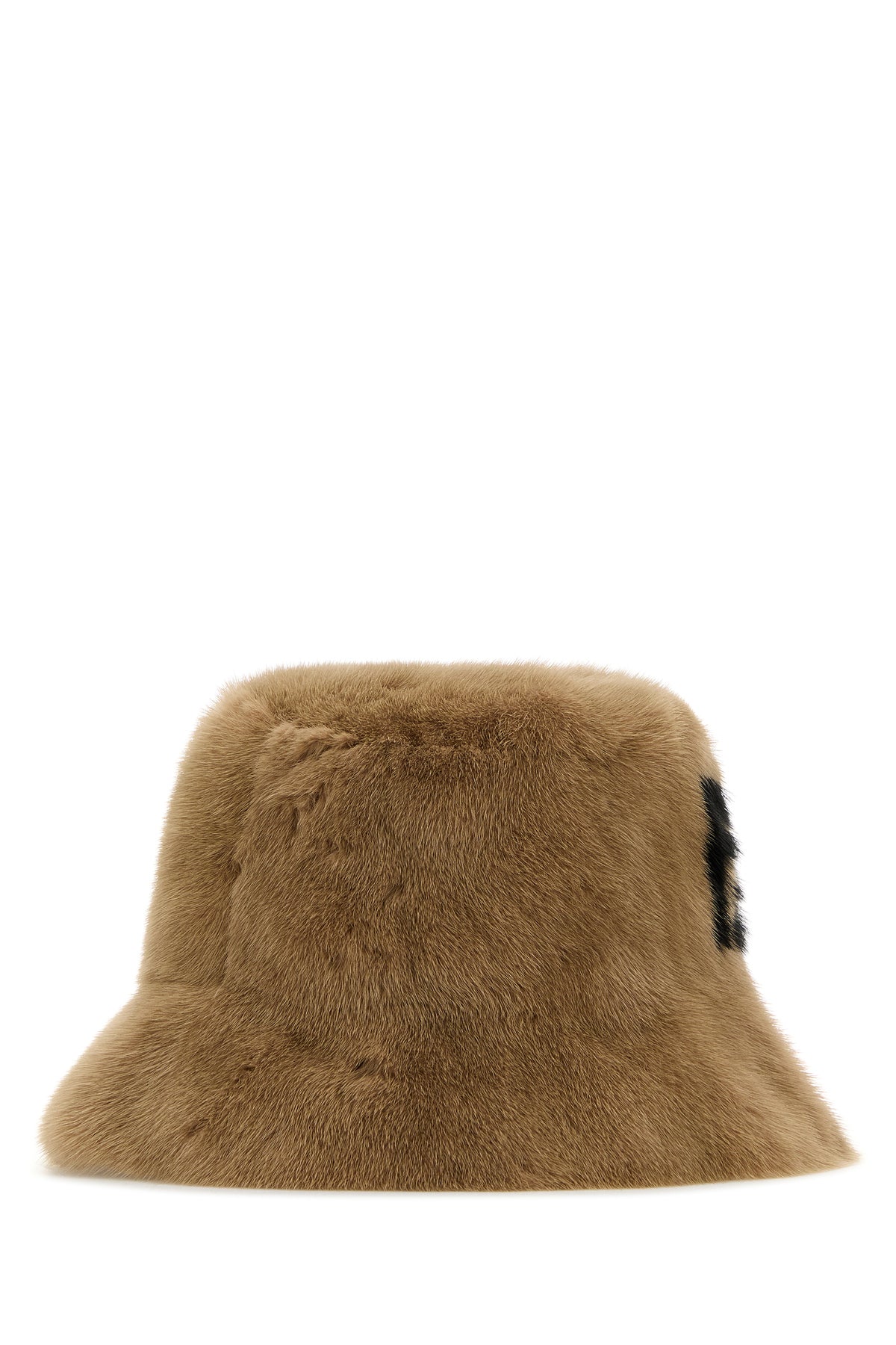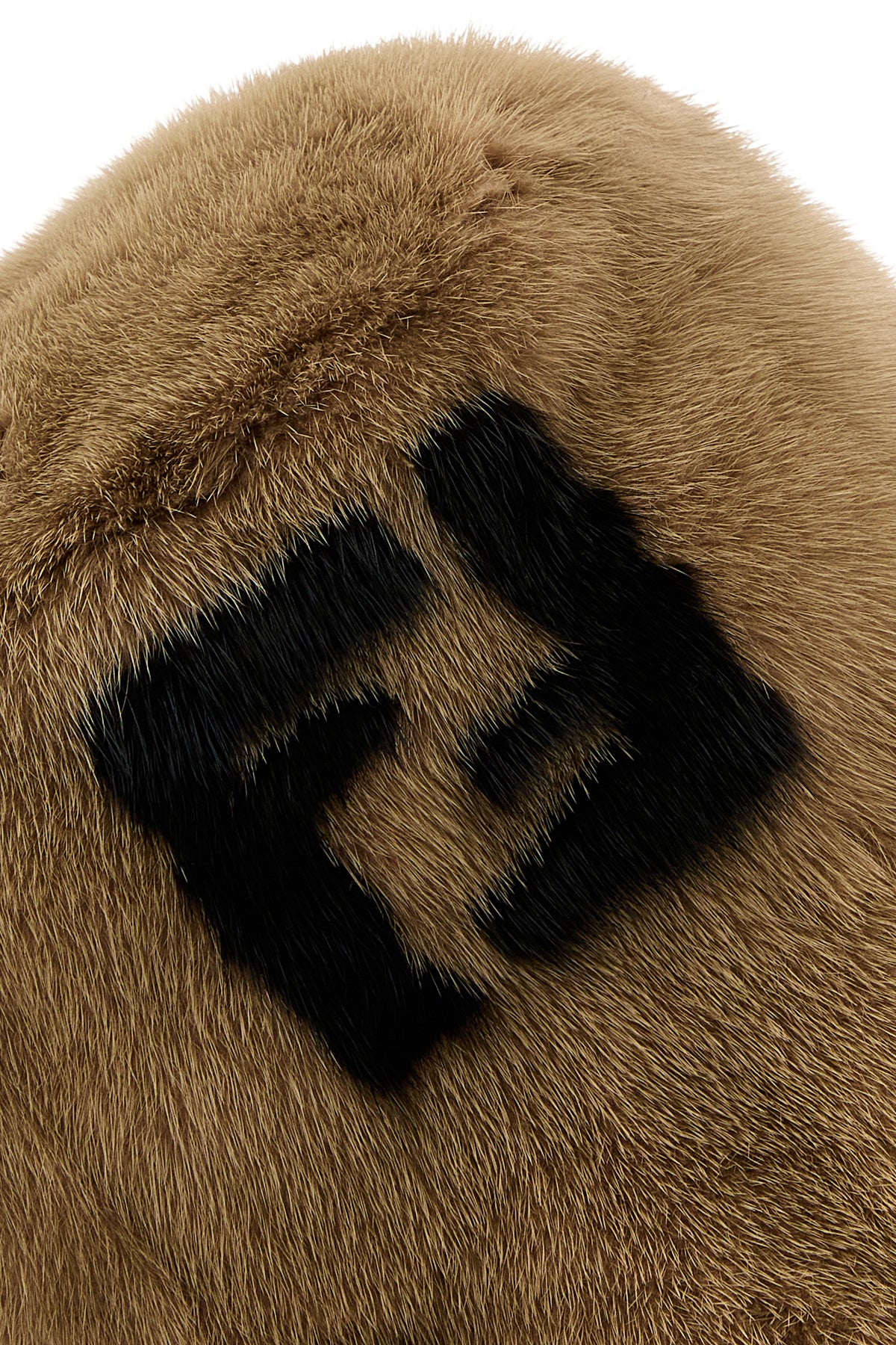 Cappello da pescatore realizzato in visone caratterizzato da stampa logata a contrasto sulla parte frontale.