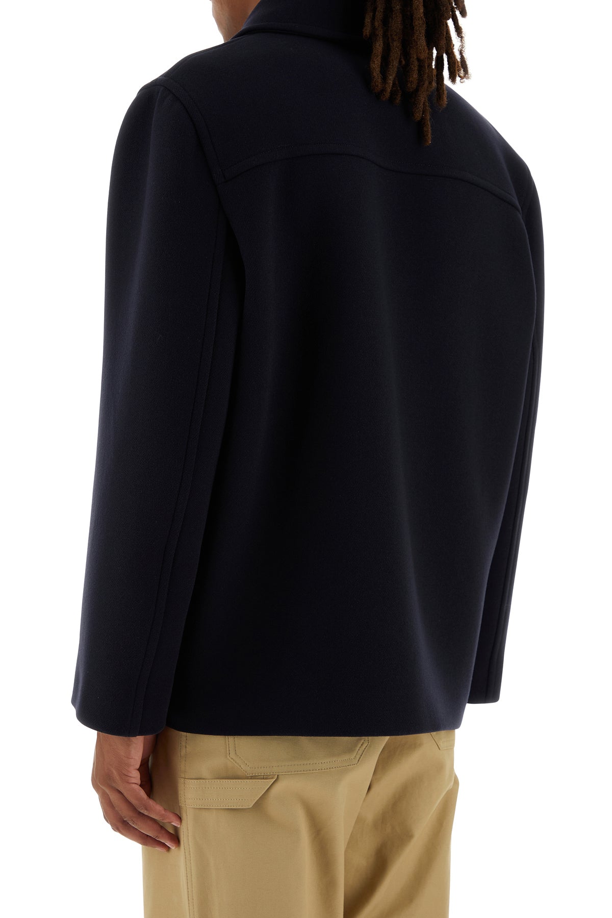 Cappotto dal taglio corto realizzato in pura lana vergine caratterizzato da revers.