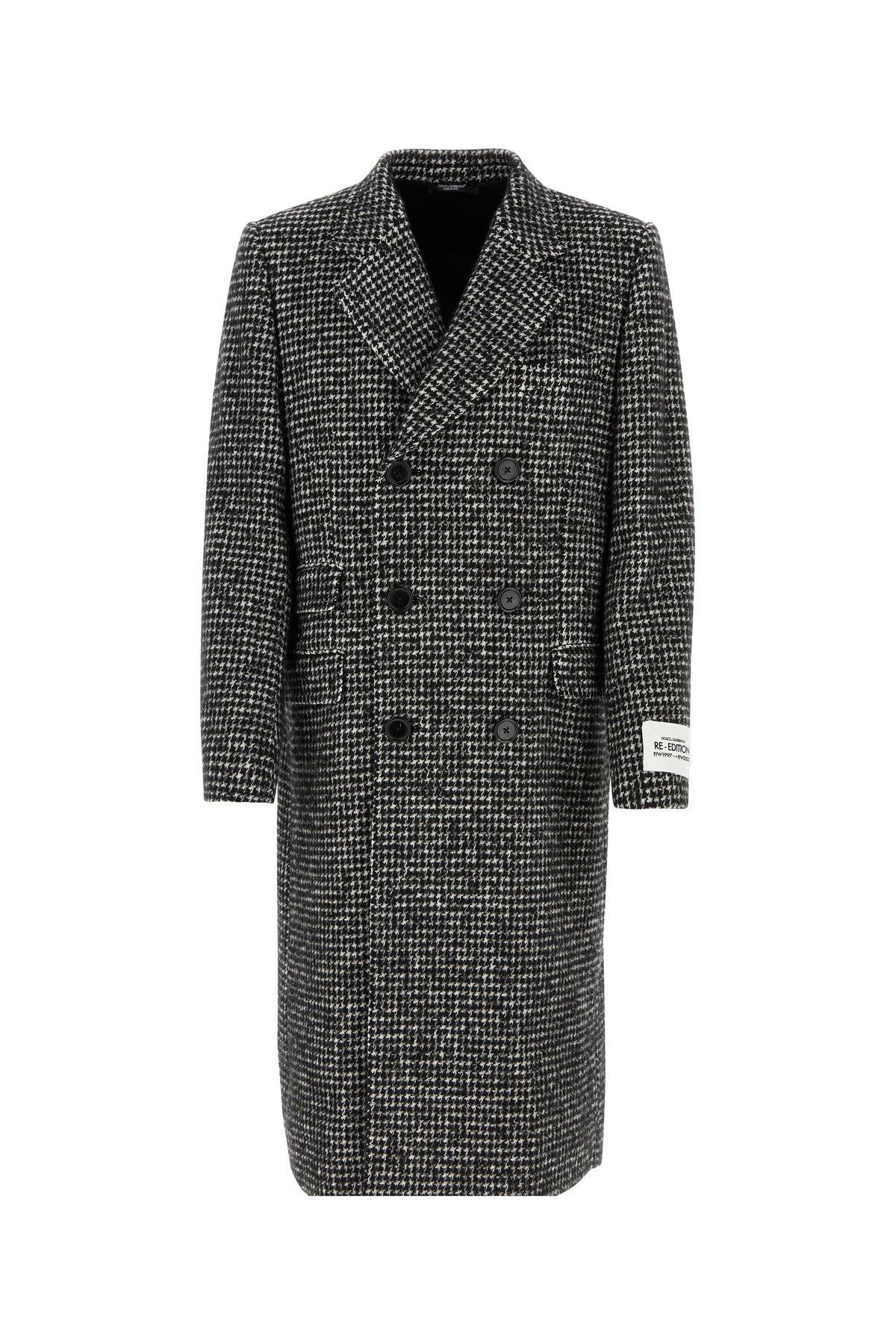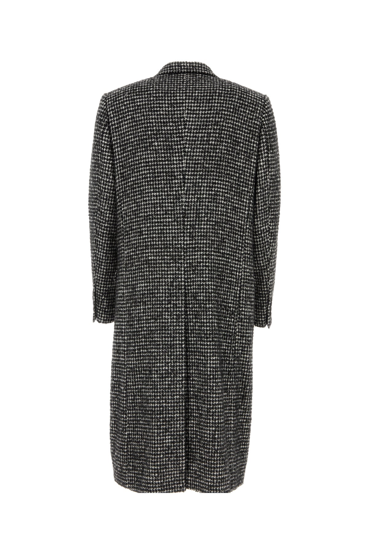 Cappotto realizzato in misto acrilico caratterizzato da ricamo pied de poule su tutta la superficie arricchito da etichetta logata sulla manica.