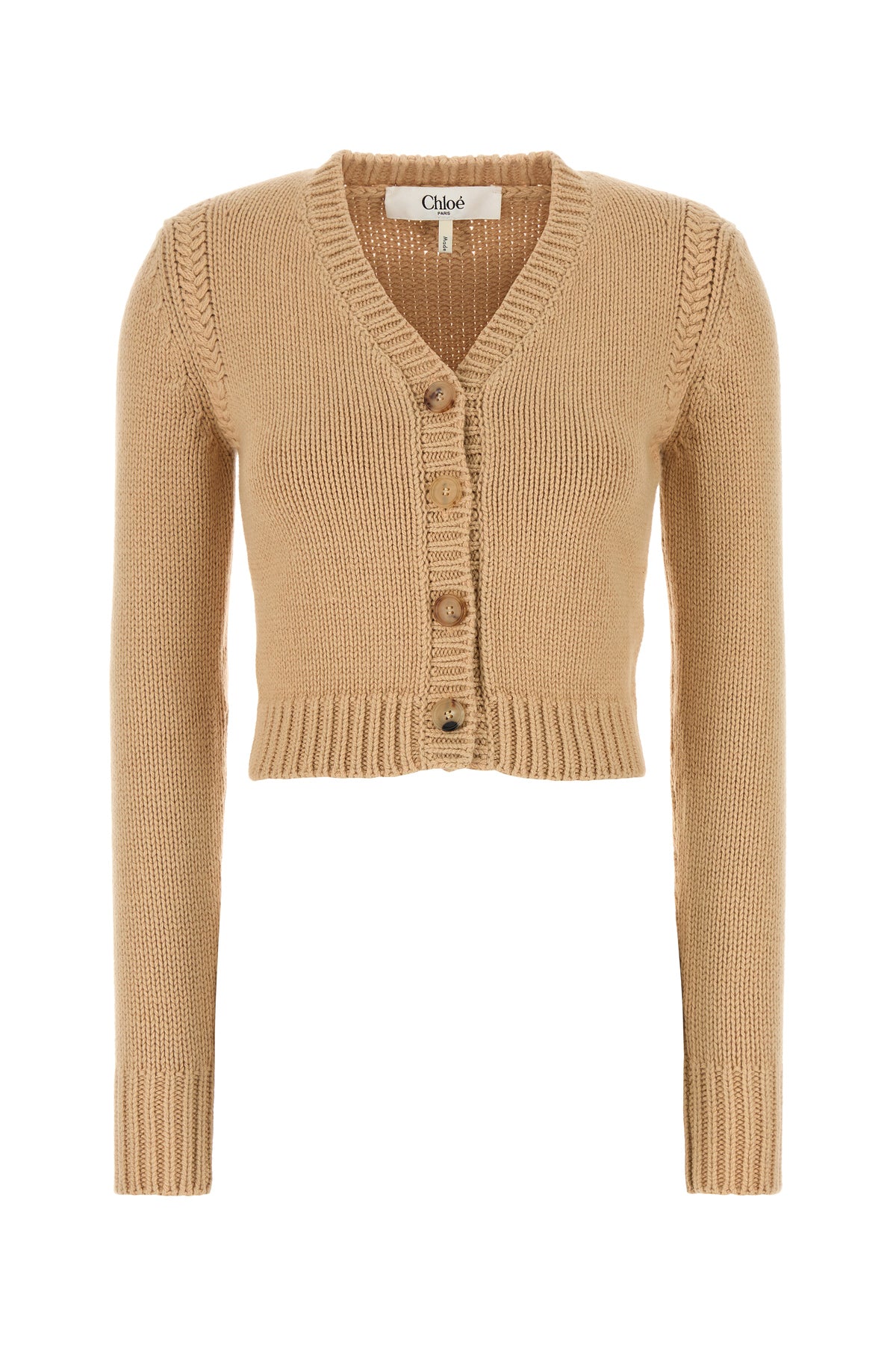 Cardigan beige in cotone a cashmere