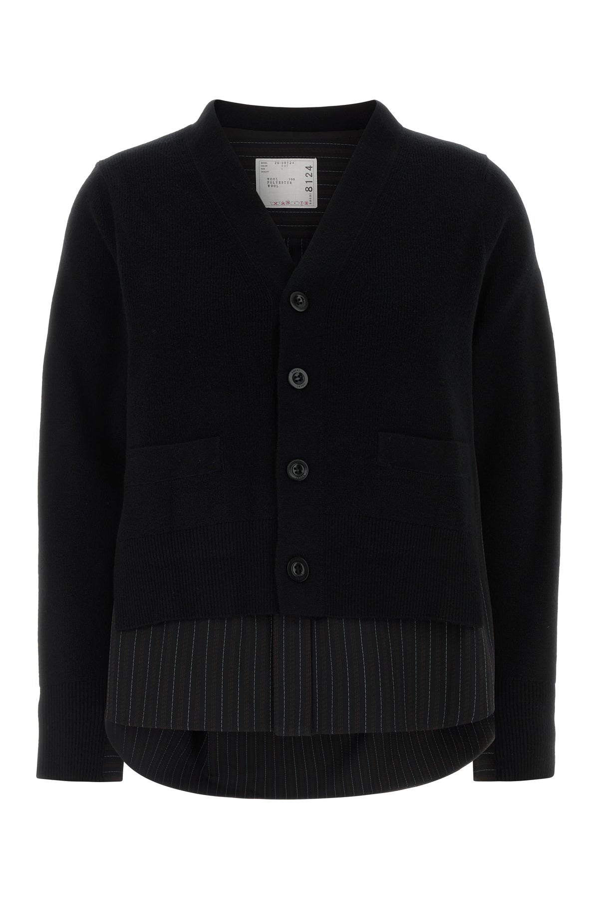 Cardigan realizzato in pura lana con inserto in misto poliestere ricamato sul retro.