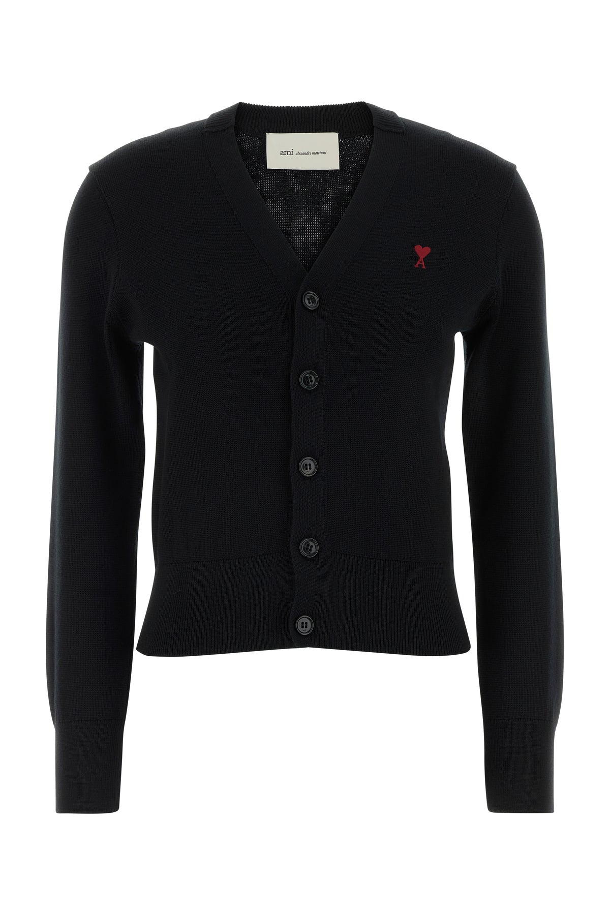 Cardigan realizzato in pura lana merino caratterizzata da ricamo Ami De Coeur sul petto.