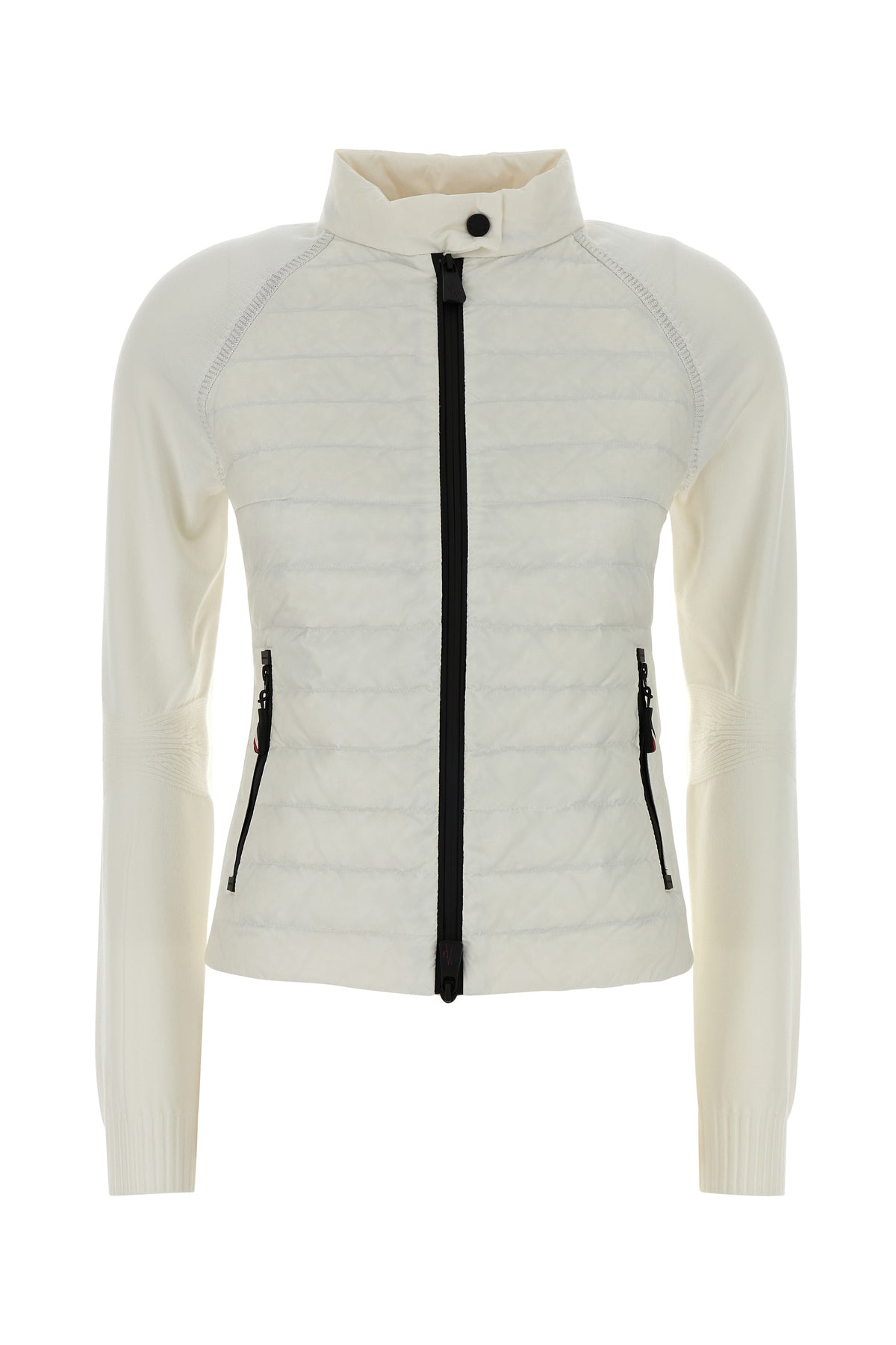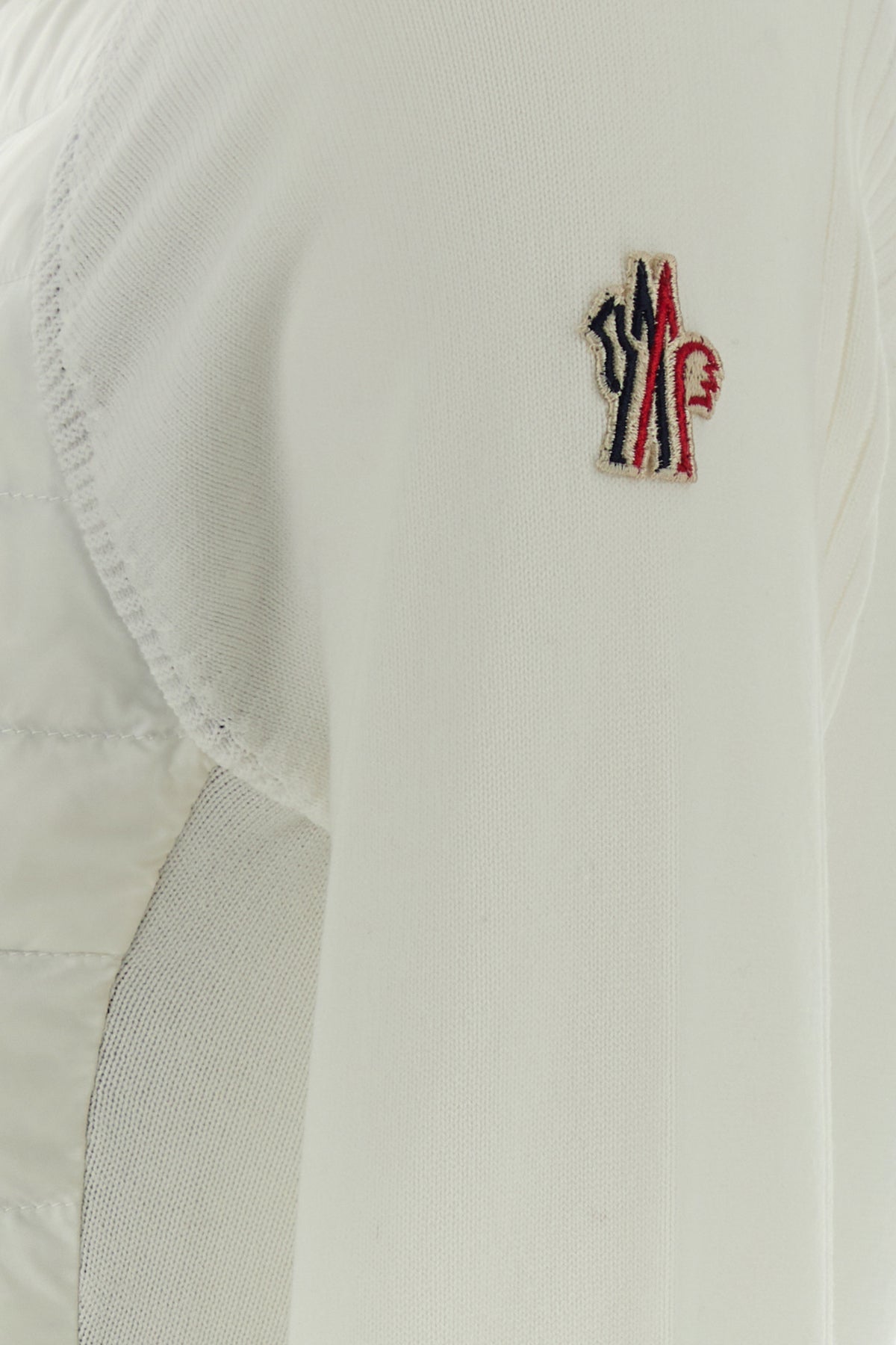 Cardigan realizzato in maglia di misto viscosa con inserto in piumino trapuntato caratterizzato da logo ricamato tonale sul polsini arricchito da applicazione logata a contrasto sulla manica.