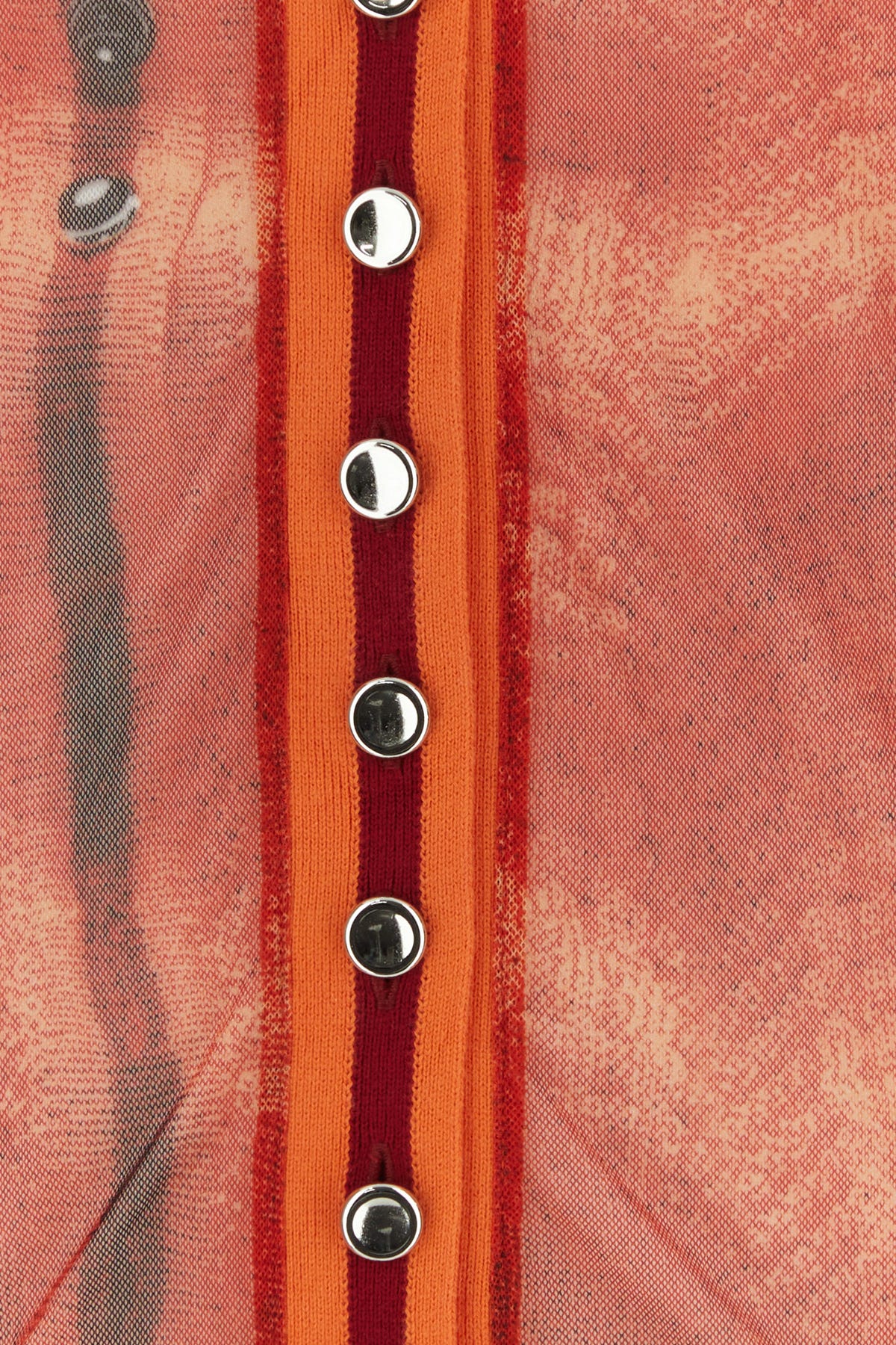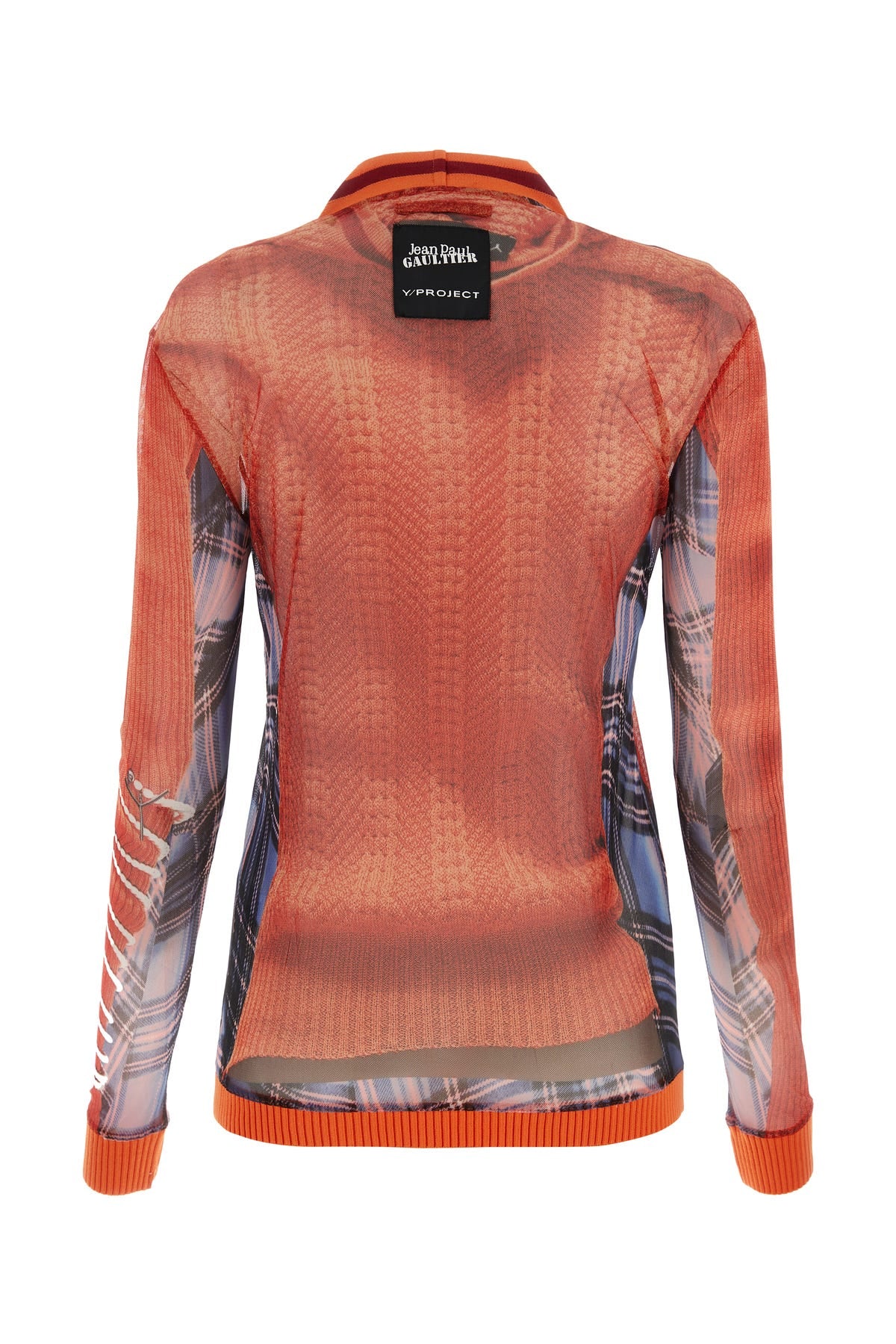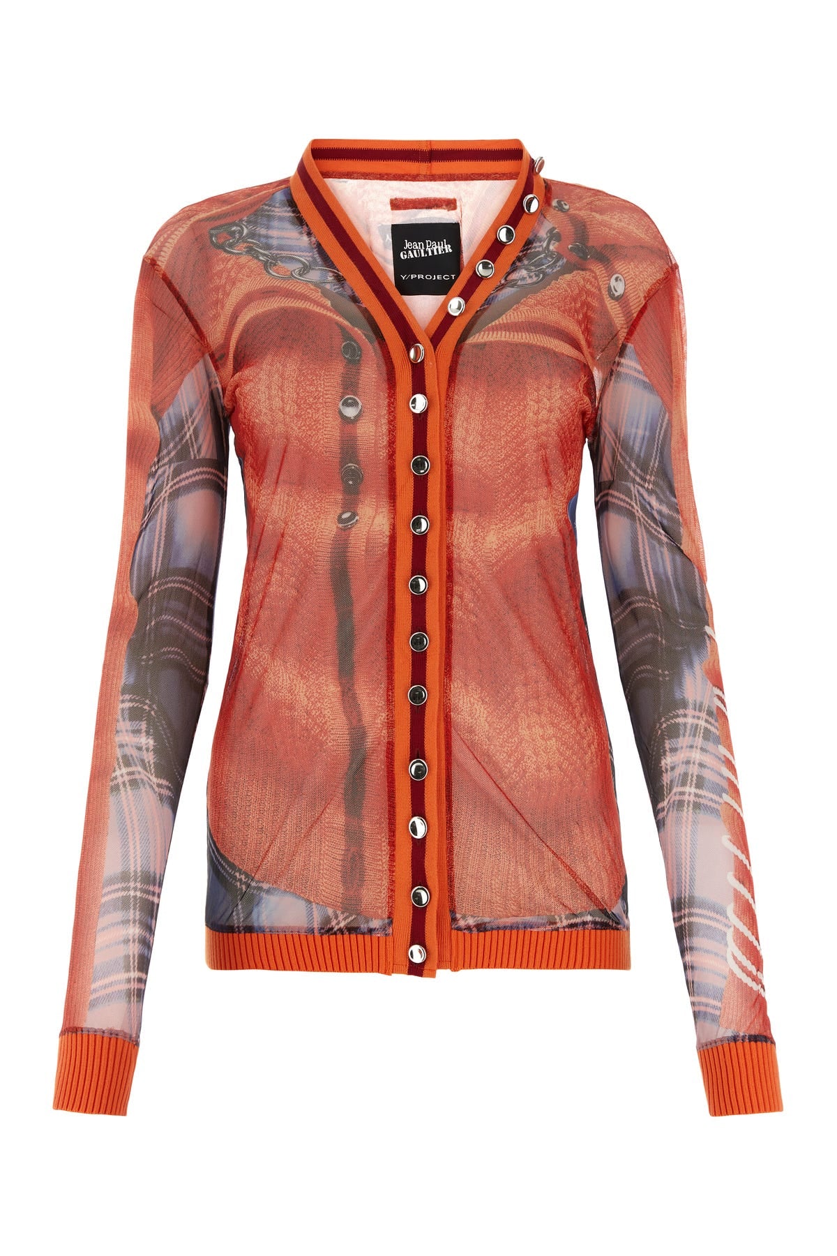 Cardigan creato in collaborazione con Jean Paul Gaultier in tulle stampato.