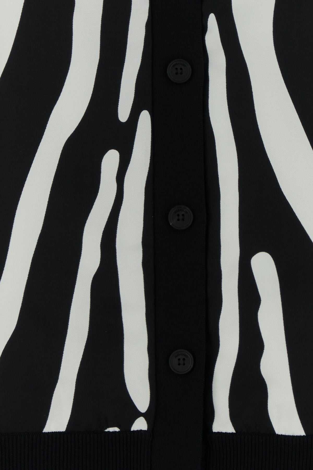 Cardigan realizzato in viscosa con inserto in seta sulla parte frontale caratterizzato da stampa animalier sulla parte frontale.