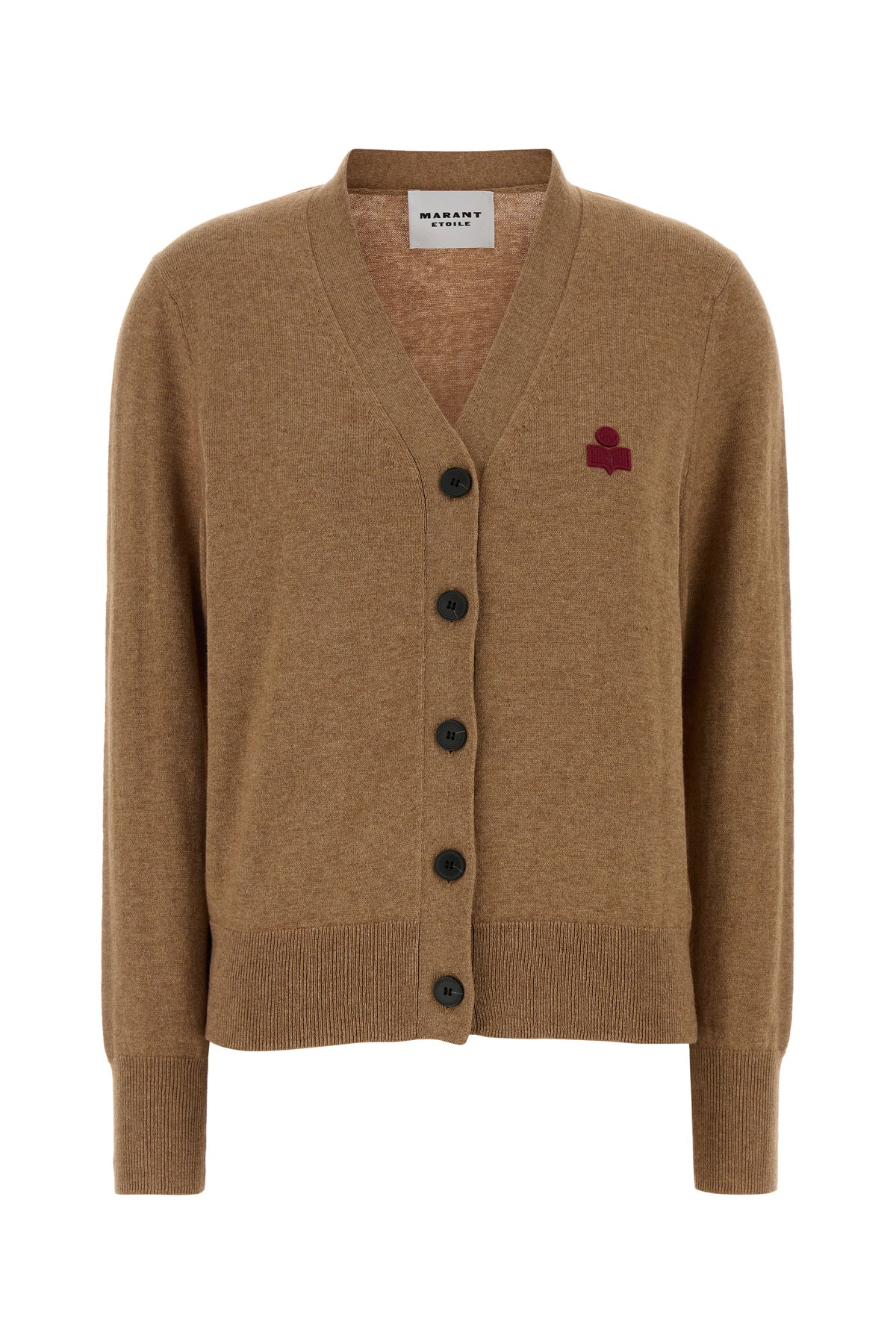 Cardigan realizzato in cotone e lana arricchito da applicazione logata a contrasto sul petto.