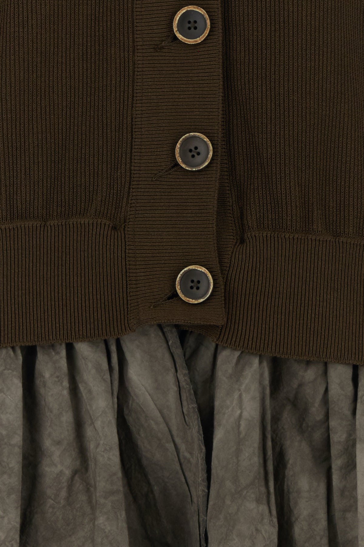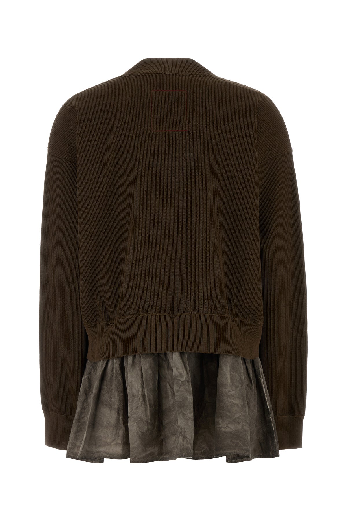 Cardigan oversize realizzato in cotone e seta arricchito da inserto in popeline ad effetto vintage sul fondo.