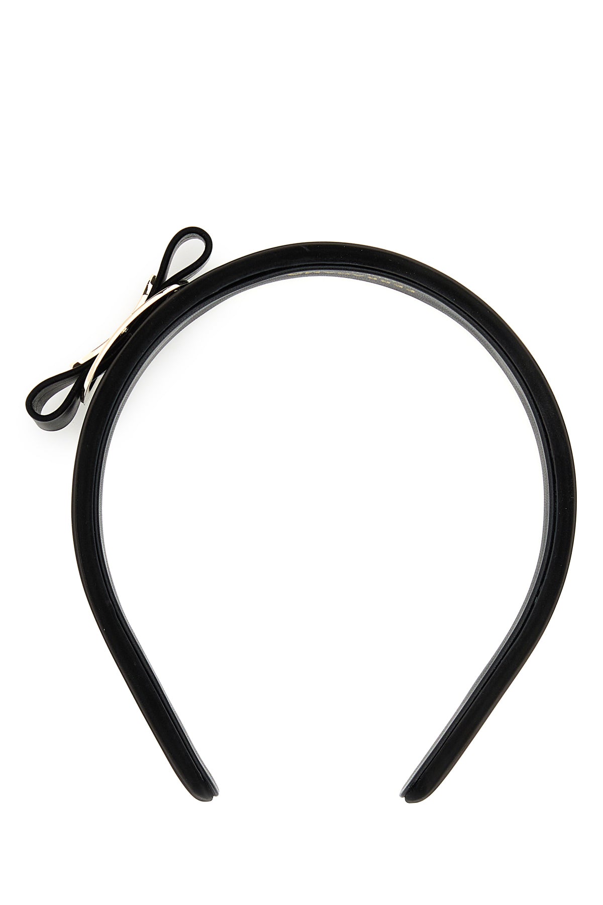 Cerchietto realizzato in pelle verniciata arricchito da dettaglio metallico Vera.