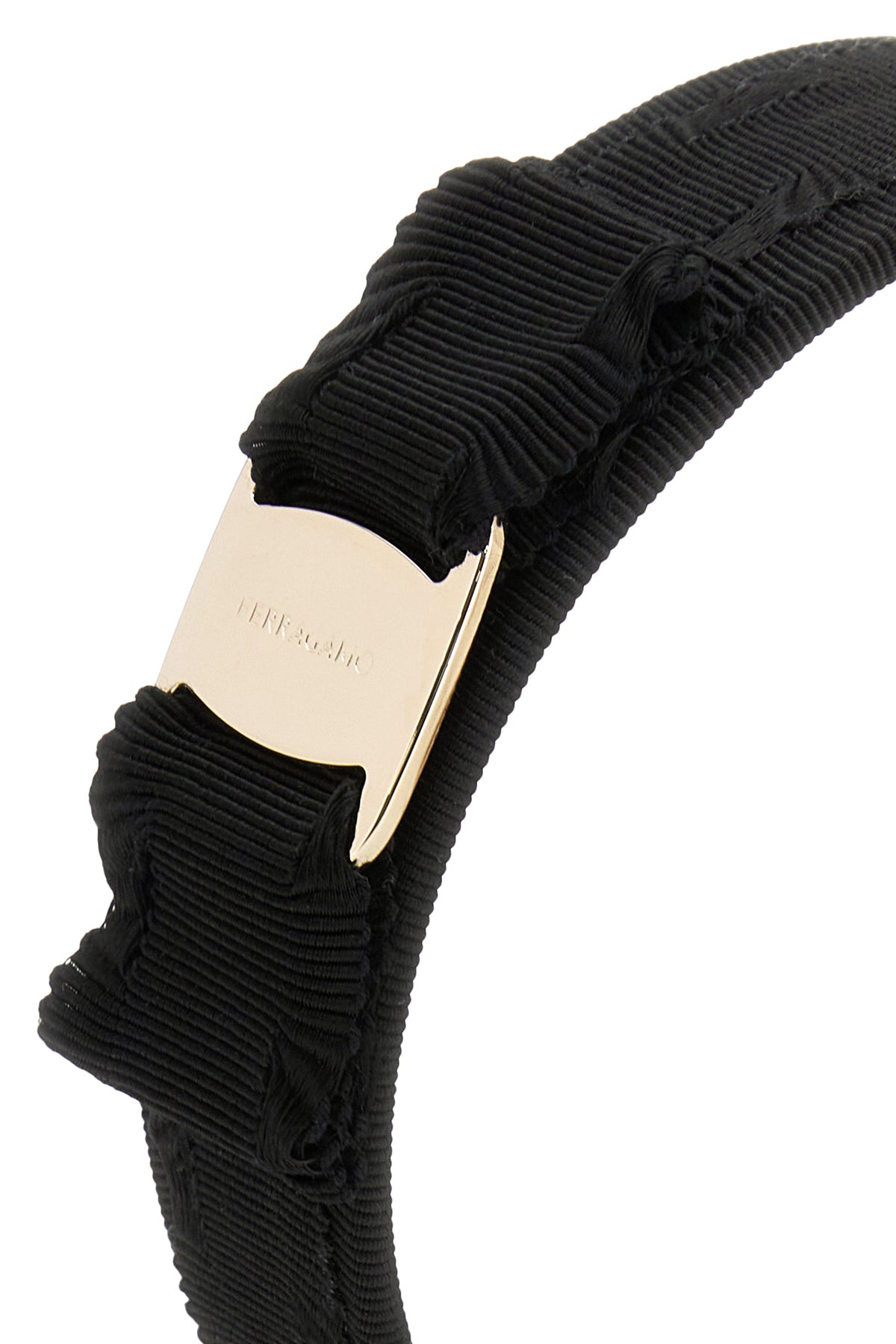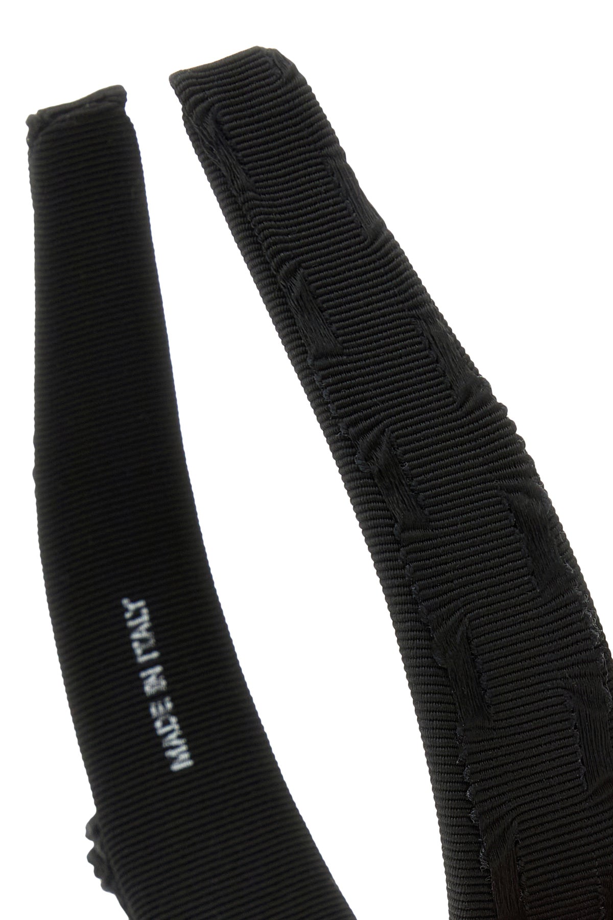 Cerchietto realizzato in tessuto a costine arricchito da fiocco Vara in tessuto tonale con dettaglio metallico.