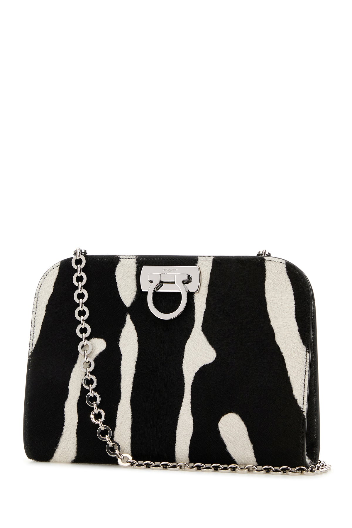 Clutch realizzata in cavallino caratterizzata da stampa animalier su tutta la superficie.