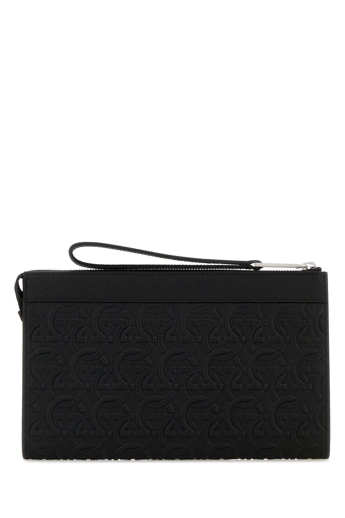 Clutch realizzata in pelle di vitello caratterizzate da logo impresso sulla parte superiore e motivo Gancini in rilievo su tutta la superficie.