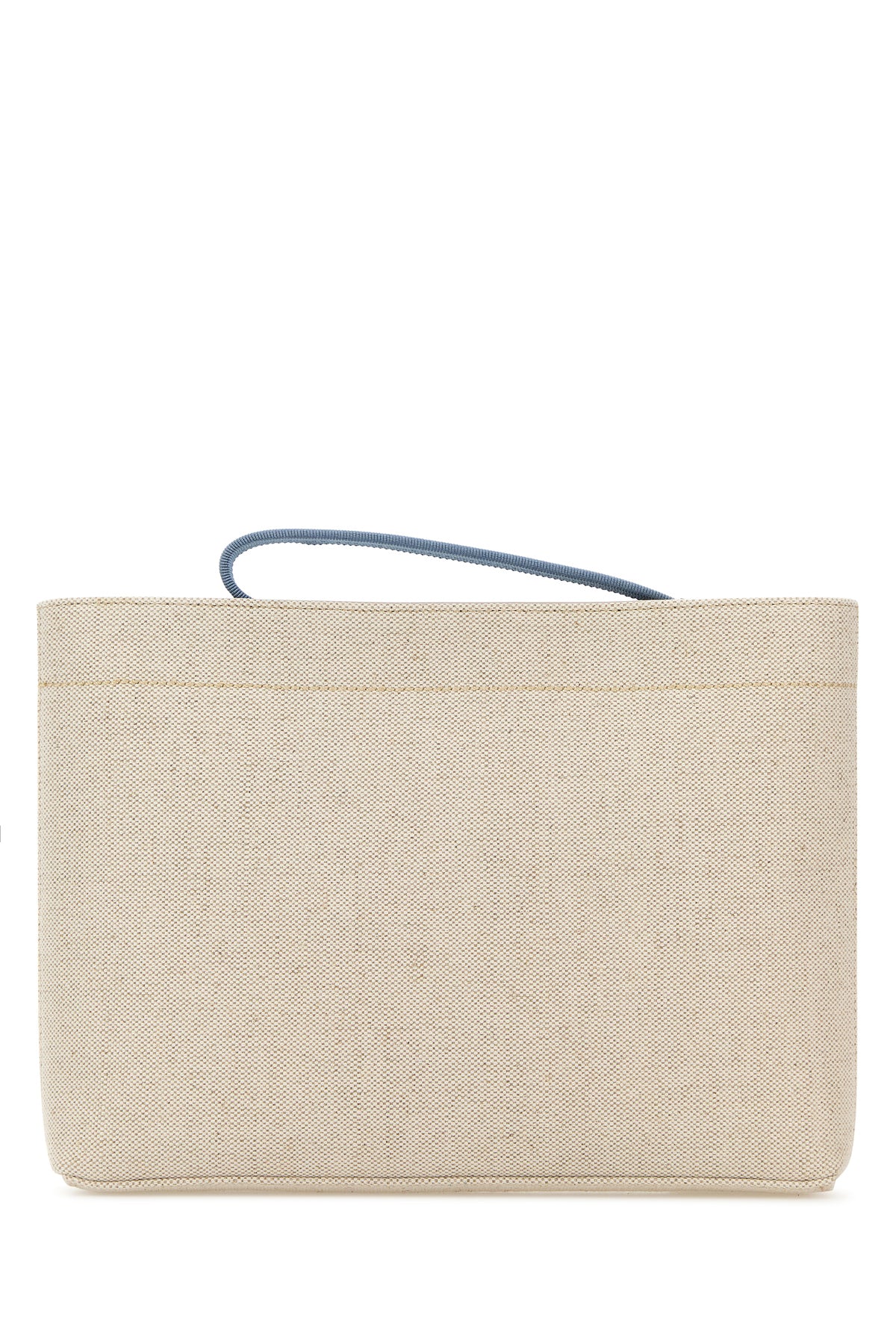 Clutch realizzata in tela di cotone e lino caratterizzata da stampa logata sulla parte frontale.